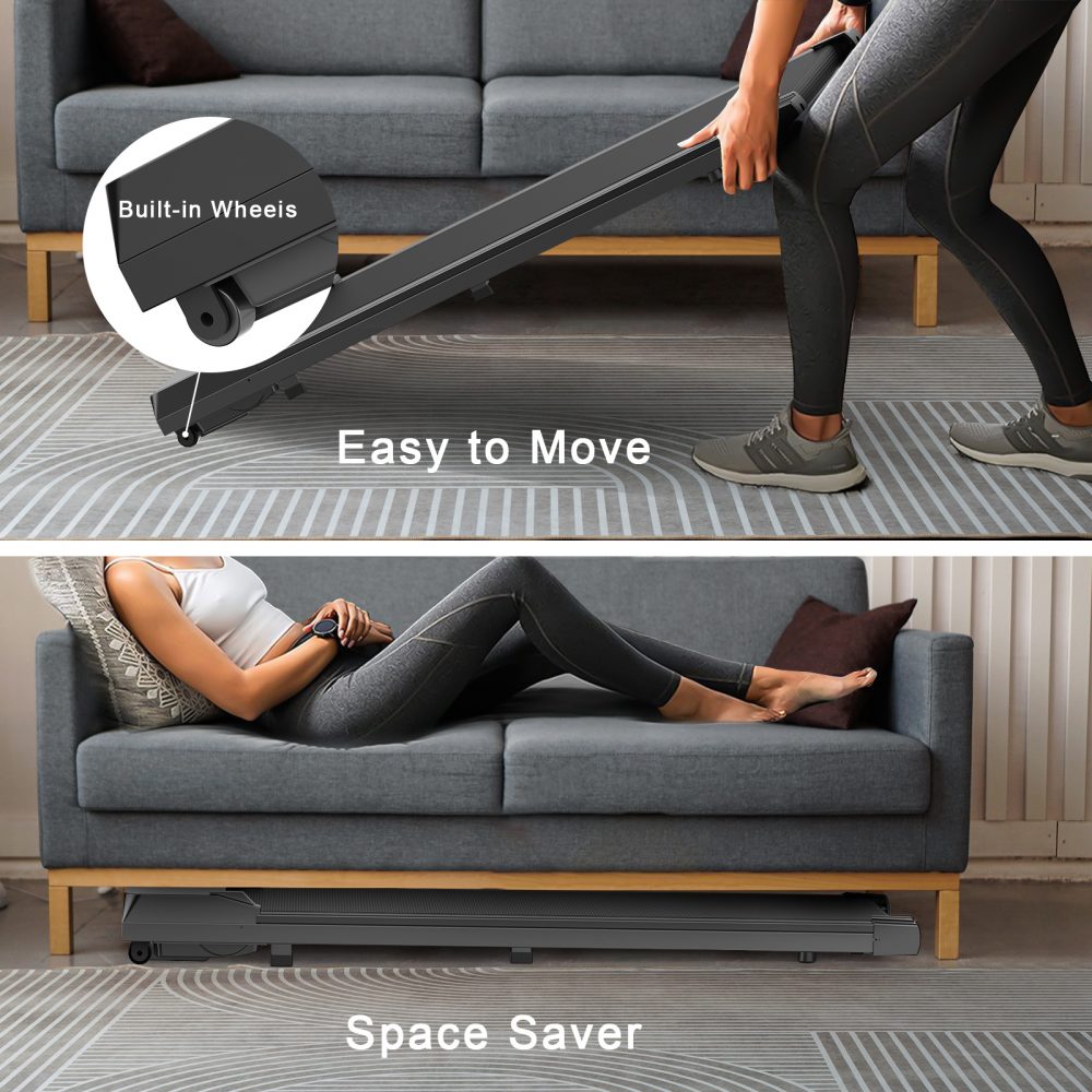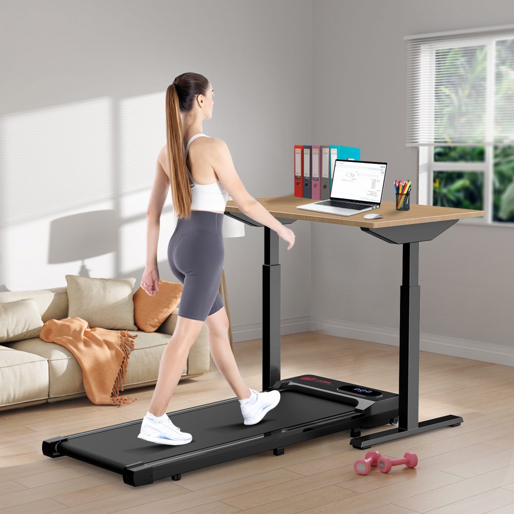 Smart och platsbesparande löpband med en kompakt och ultralätt design. Perfekt för både intensiva träningspass och lugna promenader på hemmakontoret. Anpassa din träning med en hastighetsintervall från 1 till 6 km/h, vilket gör det idealiskt för både nybörjare och avancerade fitnessentusiaster. Den interaktiva LED-displayen ger dig en tydlig översikt över din träning och det 5-lagers stötdämpande löpbandet minskar stötar vid löpning och skyddar dina knän. Lägg till en träningsmatta när du köper ditt löpband för att maximera din träning.