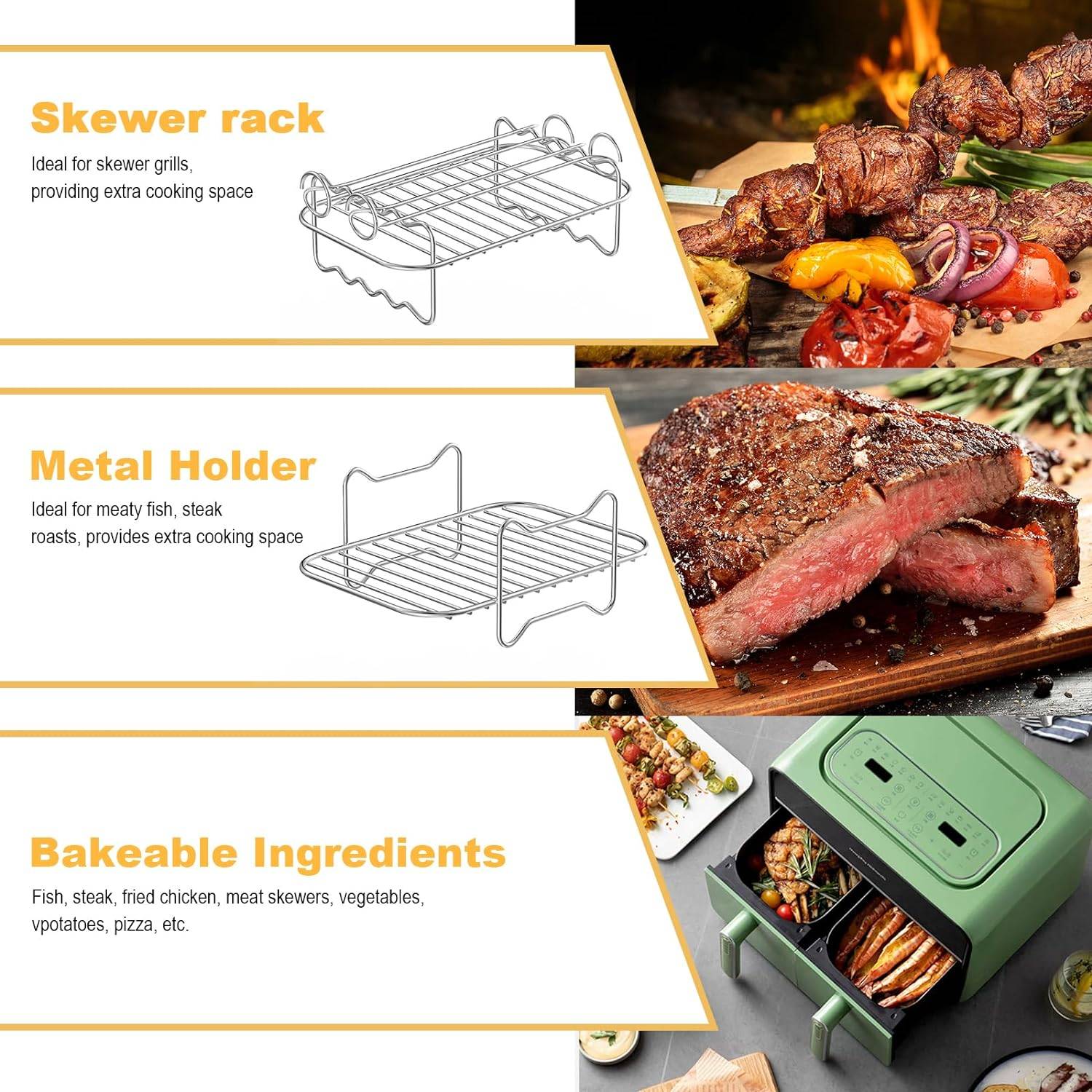 Med dessa grillställen av hållbart rostfritt stål kan du enkelt tillaga dina måltider. Använd det i din AirFryer för att utforska nya smaker och rätter. Tål diskmaskin.