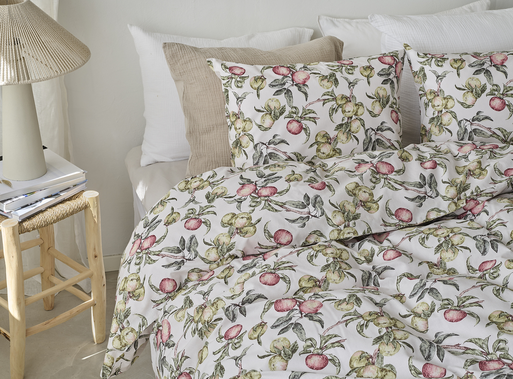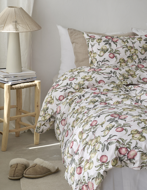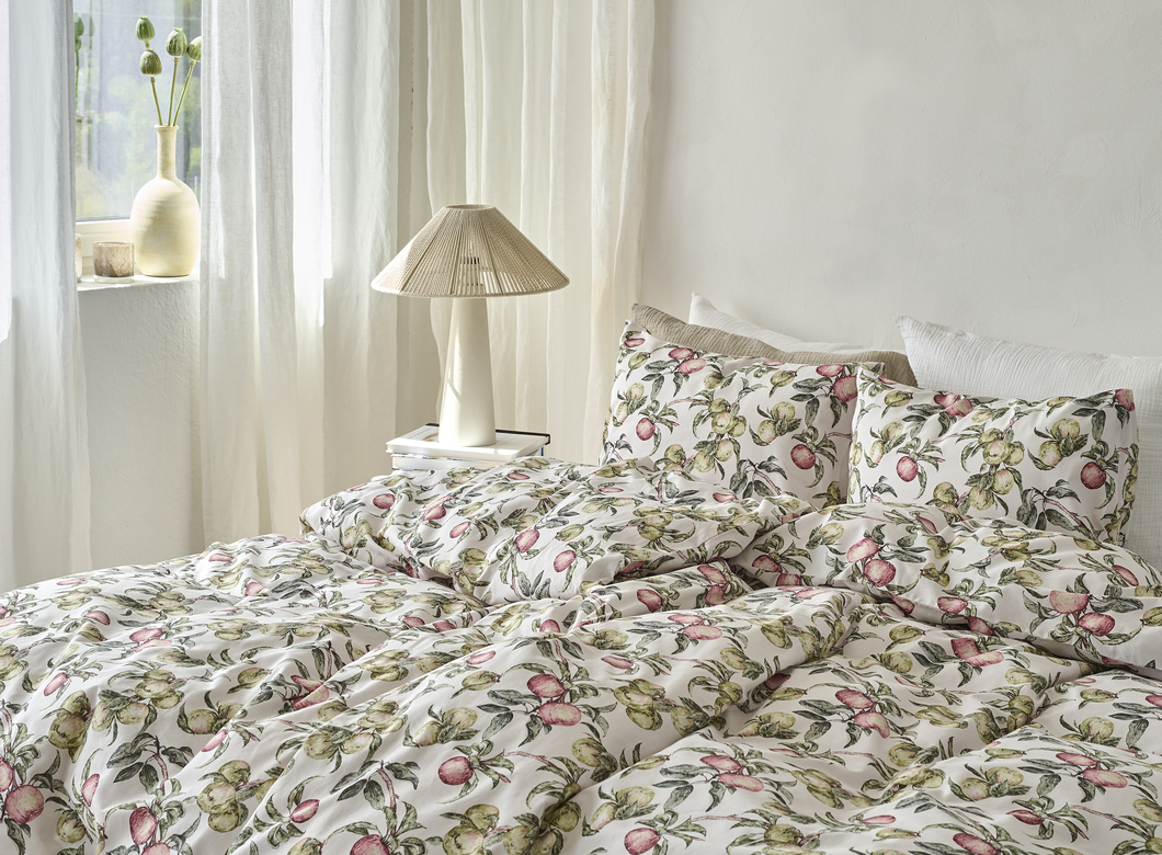 Detta bäddset, bestående av ett påslakan och ett örngott, kombinerar ett stilrent tryckt mönster med högkvalitativ, mjuk bomull. Materialets komfort och hållbarhet gör det till ett praktiskt tillskott i sovrummet.