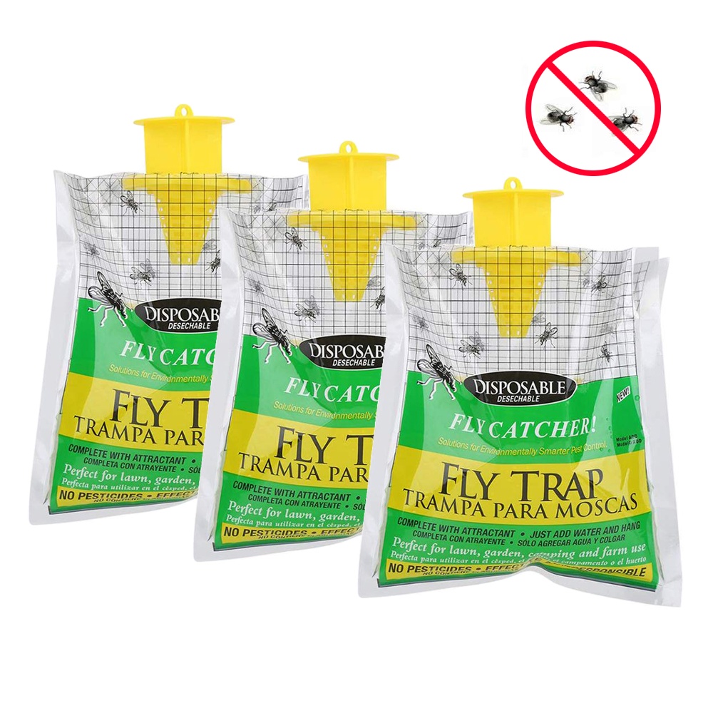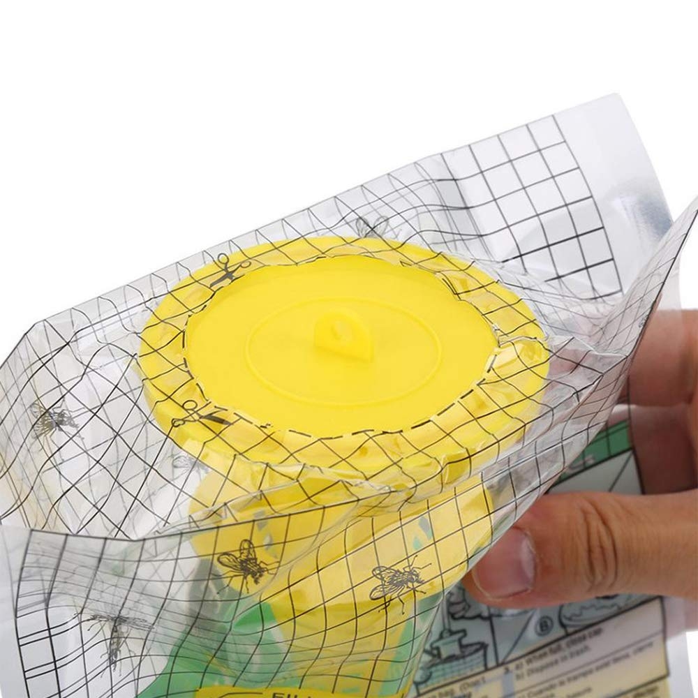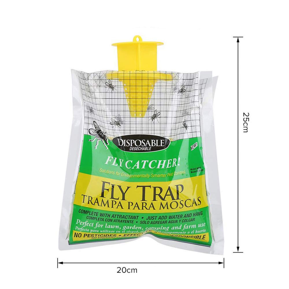 Engångsfälla för flugor som ger ett säkert, hygieniskt och effektivt sätt att bli av med irriterande flugor. Fällan är inte giftig, därmed harmlös för människokroppen. Perfekt för användning på gräsmatta, trädgård, camping och gård. Enkelt att använda, fyll på vatten för att aktivera doften som lockar flugor. Bör hängas utomhus, 7 meter från bostadsområden. Bäst att användas i bra ljusförhållanden utomhus.