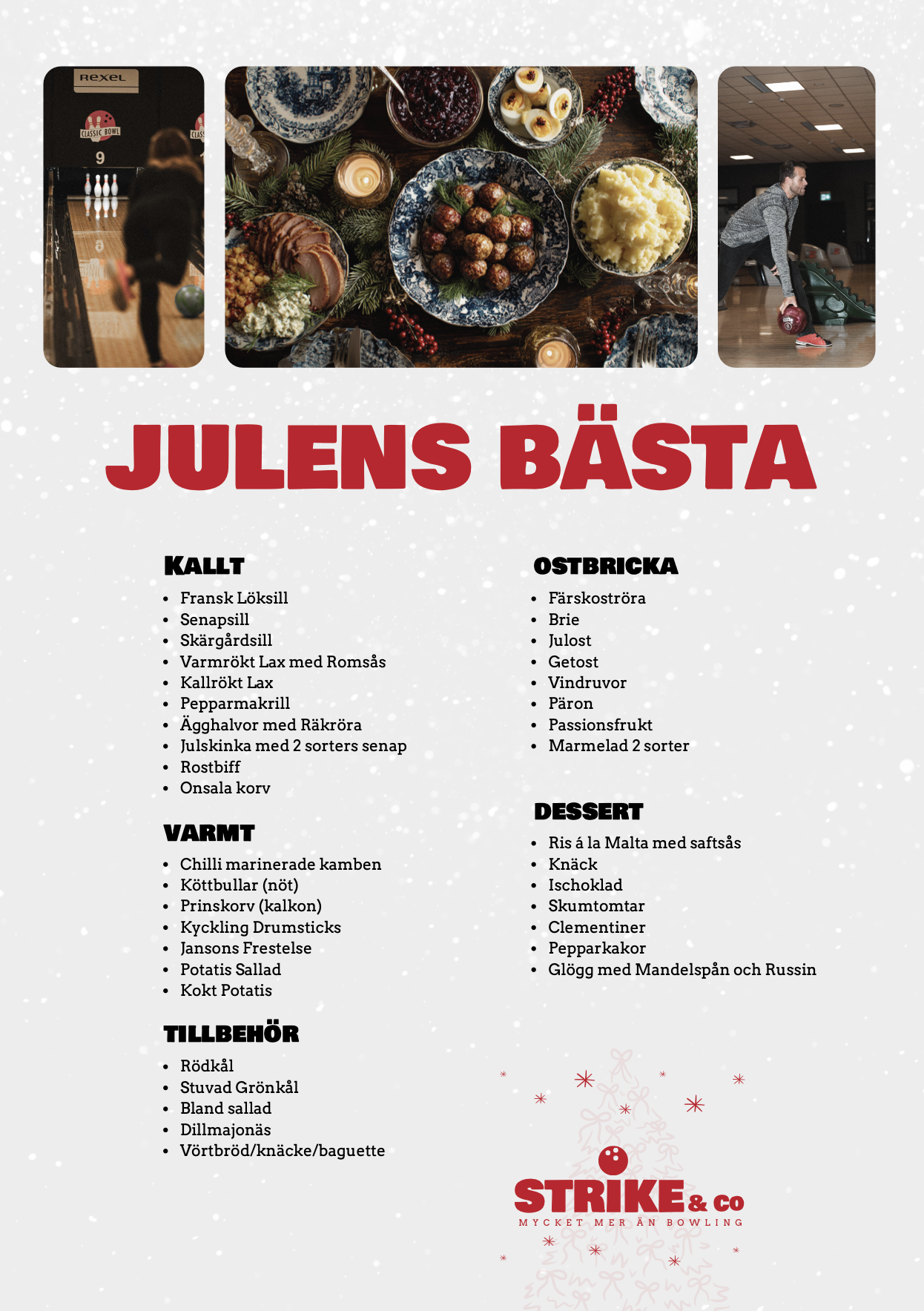 När köttbullarna är klara, rulla vidare till banan där kvällen fortsätter med bowling, shuffleboard och skratt. För er som vill kombinera julbordets smaker med spelglädje och gemenskap för den ultimata julfesten.
