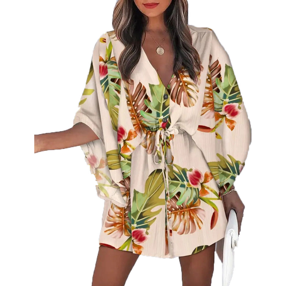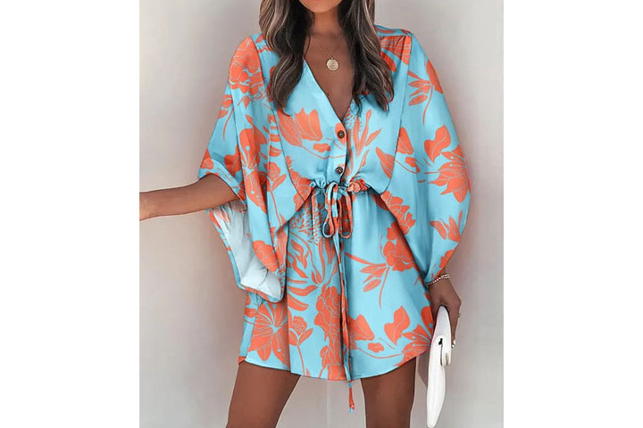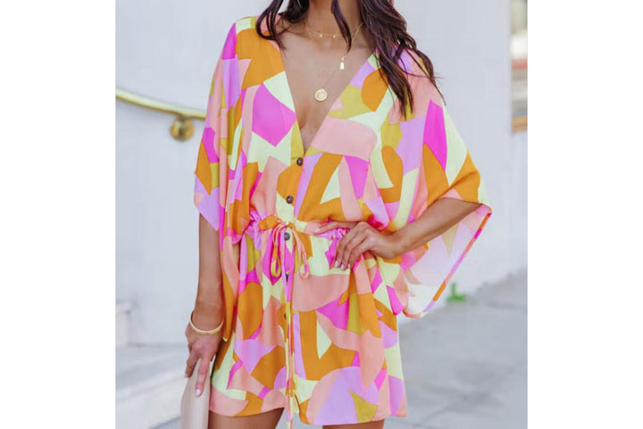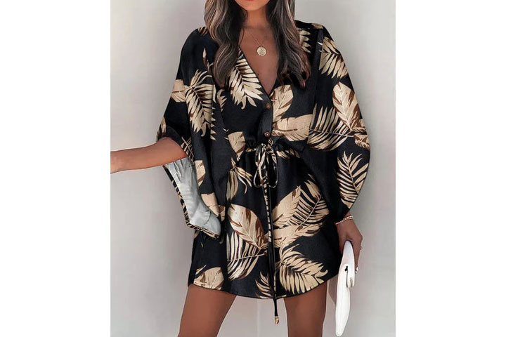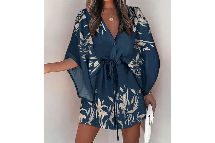 Härligt mönstrad v-ringad tunika med vida armar i fladdermusstil i fint mönster. Perfekt för alla tillfällen som både till vardags och fest!
