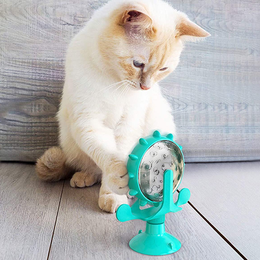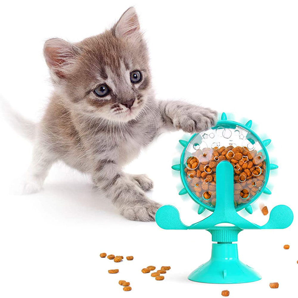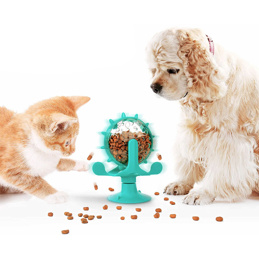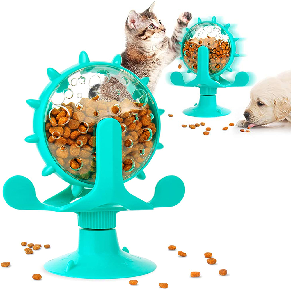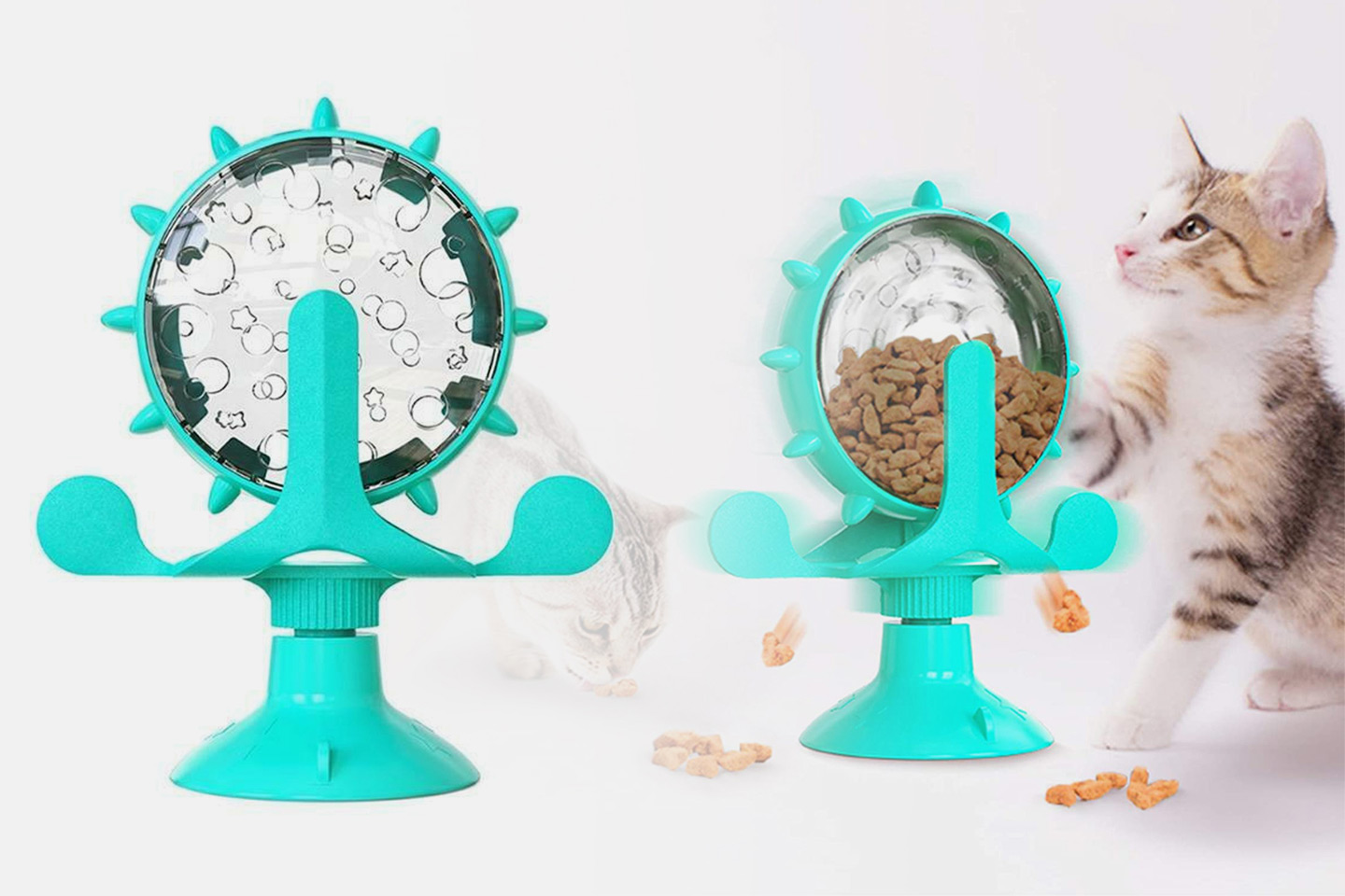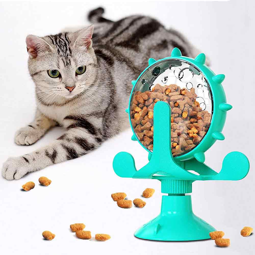 Med den här matskålen måste ditt husdjur lista ut hur hen får maten att trilla ut, när matskålen roterar faller godiset ut, aktivitet och lek belönas med godis.