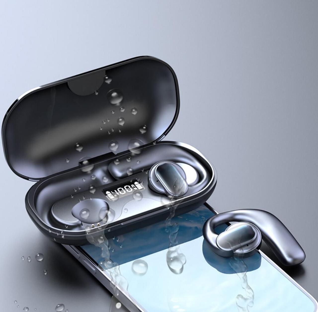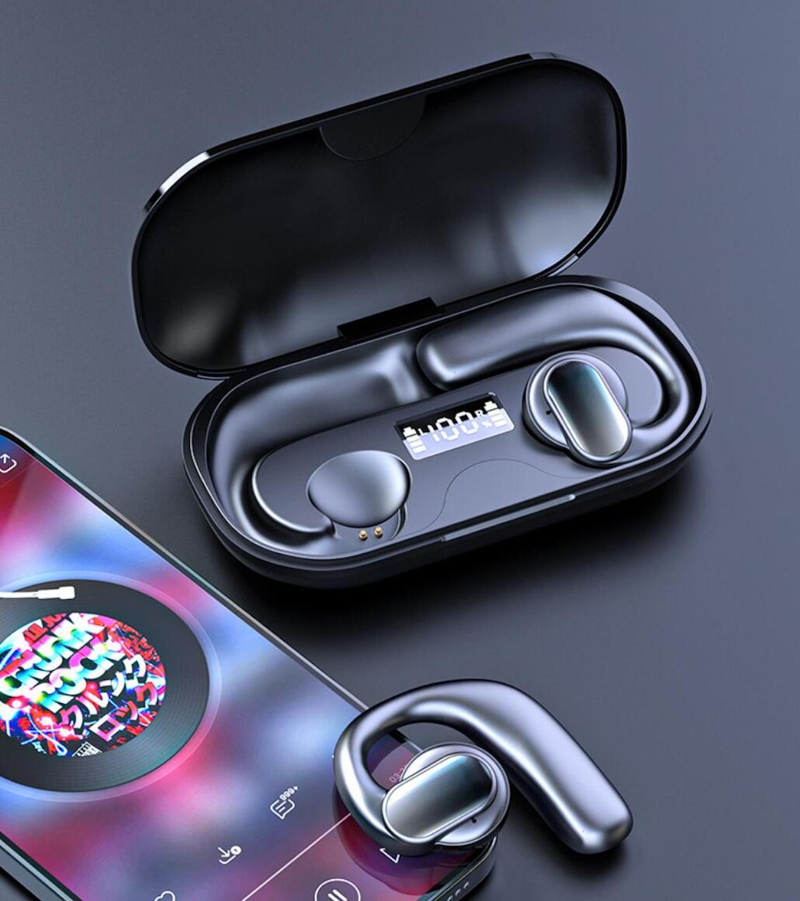 Upptäck våra Bluetooth 5.3 öppna hörlurar med enastående ljudkvalitet, lång batteritid och IPX6 vattentät design. Perfekt för en aktiv livsstil. Säg hej till framtidens lyssnande med våra Bluetooth 5.3 Öppna Hörlurar. Dessa hörlurar har en öppen design som sitter bekvämt på örat, så du kan vara uppmärksam på din omgivning samtidigt som du njuter av kristallklart ljud. Med en batteritid på upp till 6 timmar och snabbladdning på bara 1 timme, är de perfekta för dig som är ständigt i rörelse.