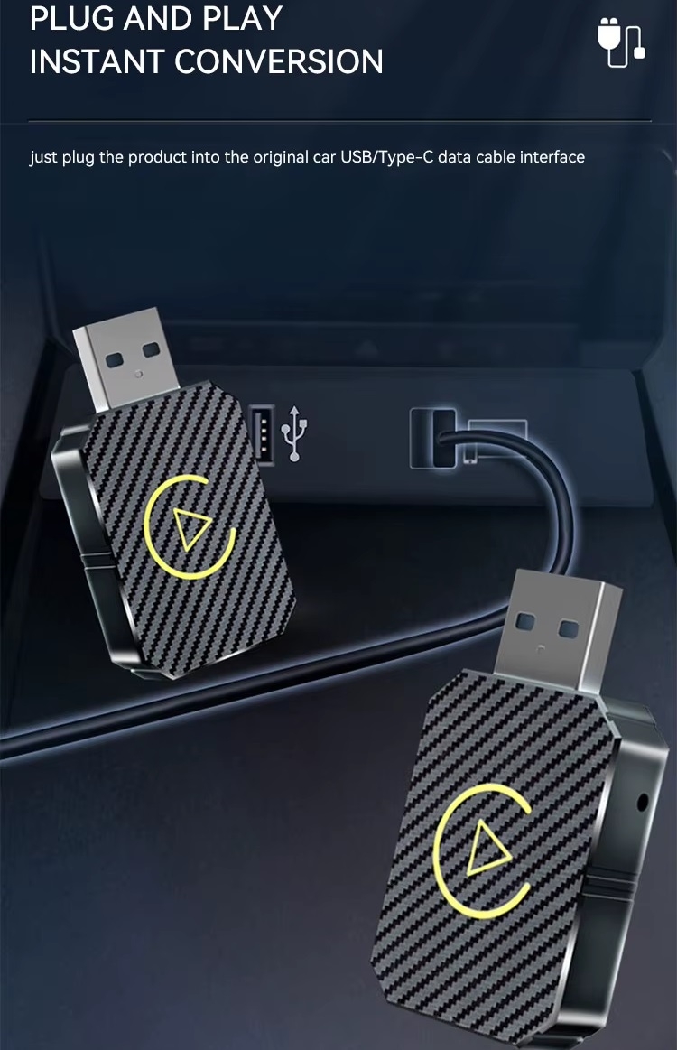 Uppgradera din bil med den senaste tekniken genom denna trådlösa CarPlay- och Android Auto-adapter. Den erbjuder en sömlös och bekväm anslutning för fordon utrustade med original CarPlay och kompatibel skärm.