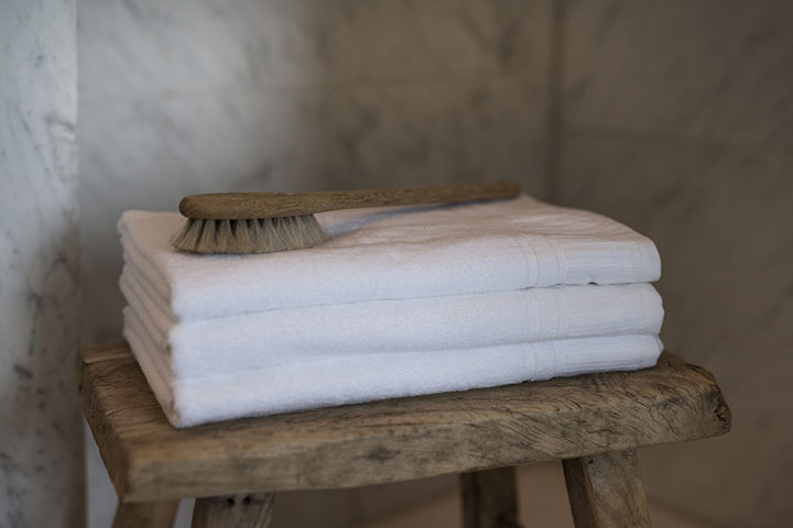 Badlakan och handdukar som ger dig en lyxig känsla av frotté du finner på de flesta hotell. Handdukarna har en stilren stapelbård och hängare på kortsidorna.