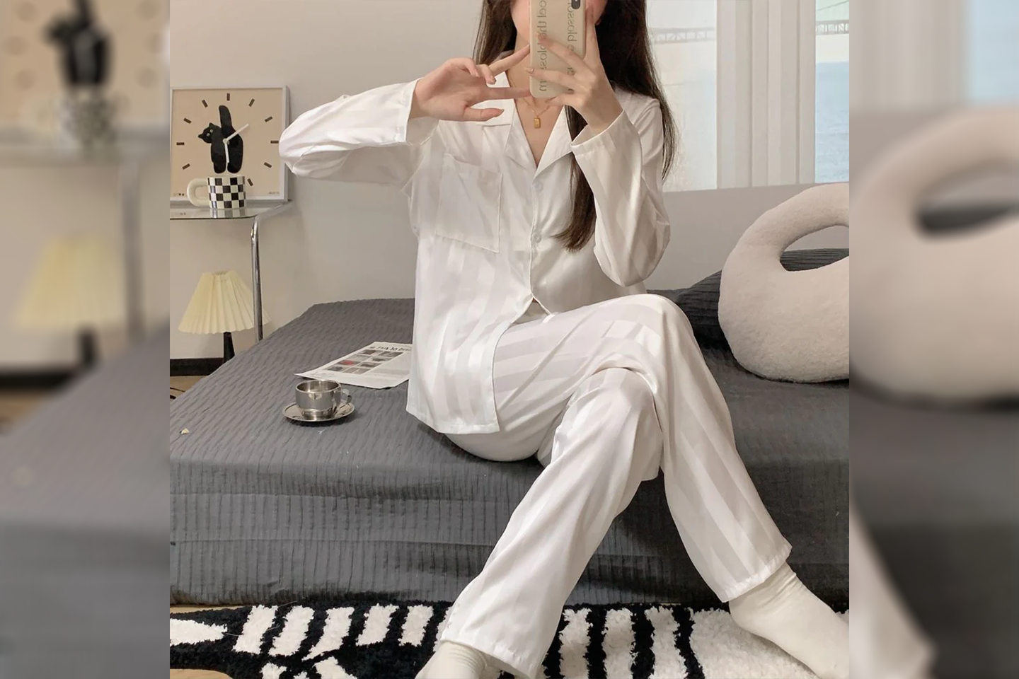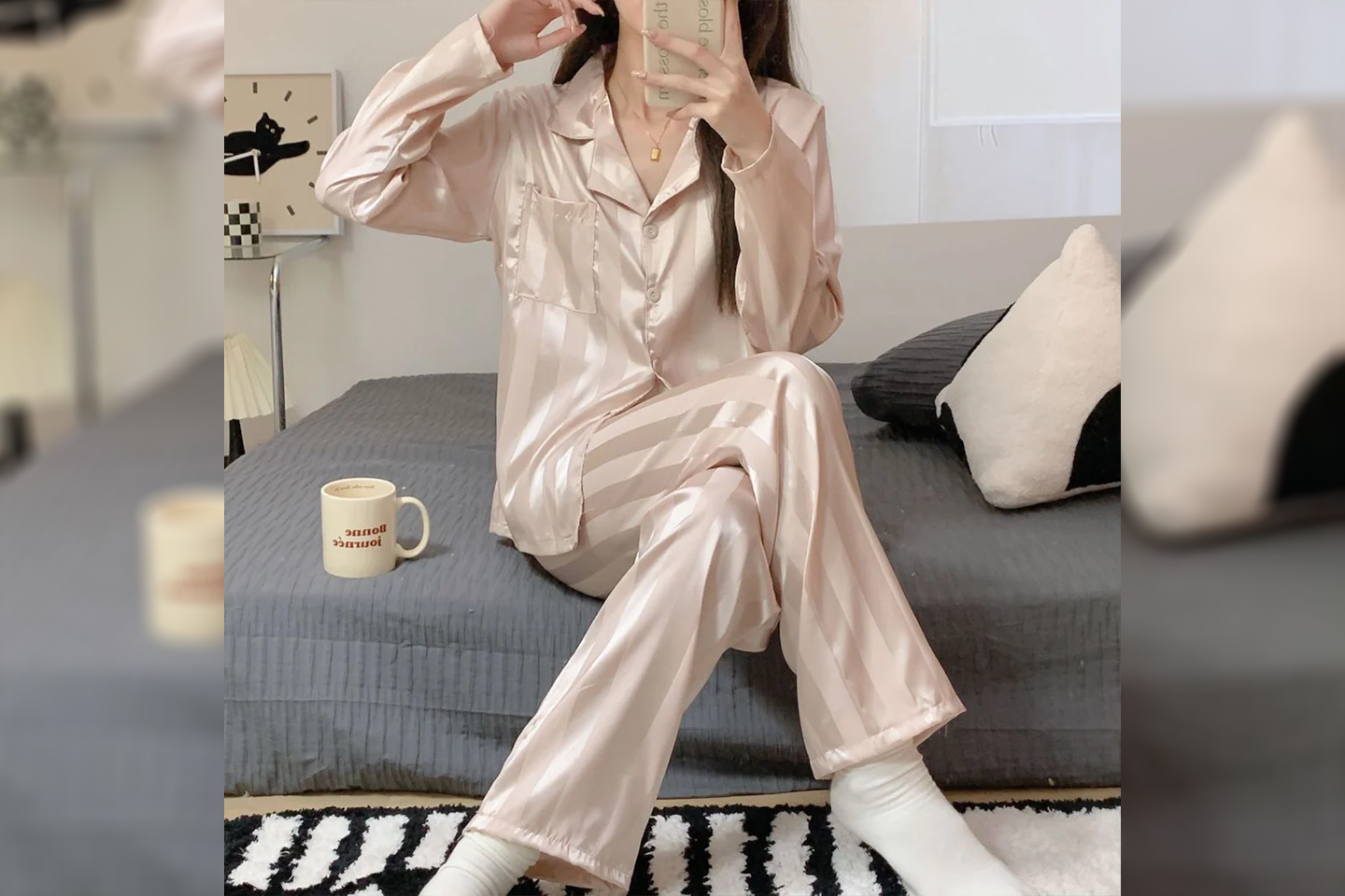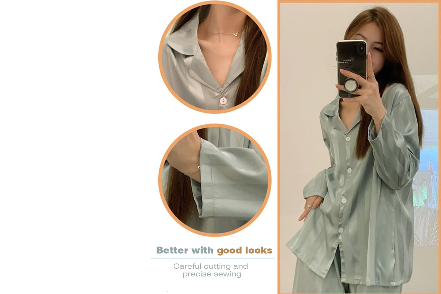 - Pyjamasskjorta: Långärmad med naggkrage, pyjamasskjorta med knapp framtill