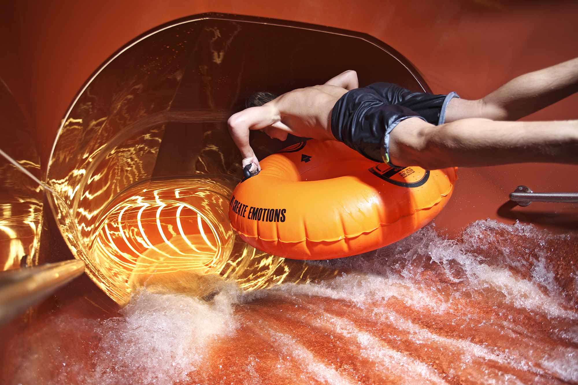 En vattenrutschbana med brant fall och höga hastigheter. Endast för de modigaste!