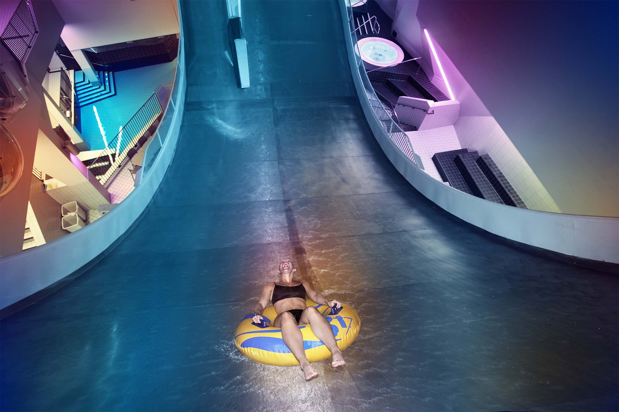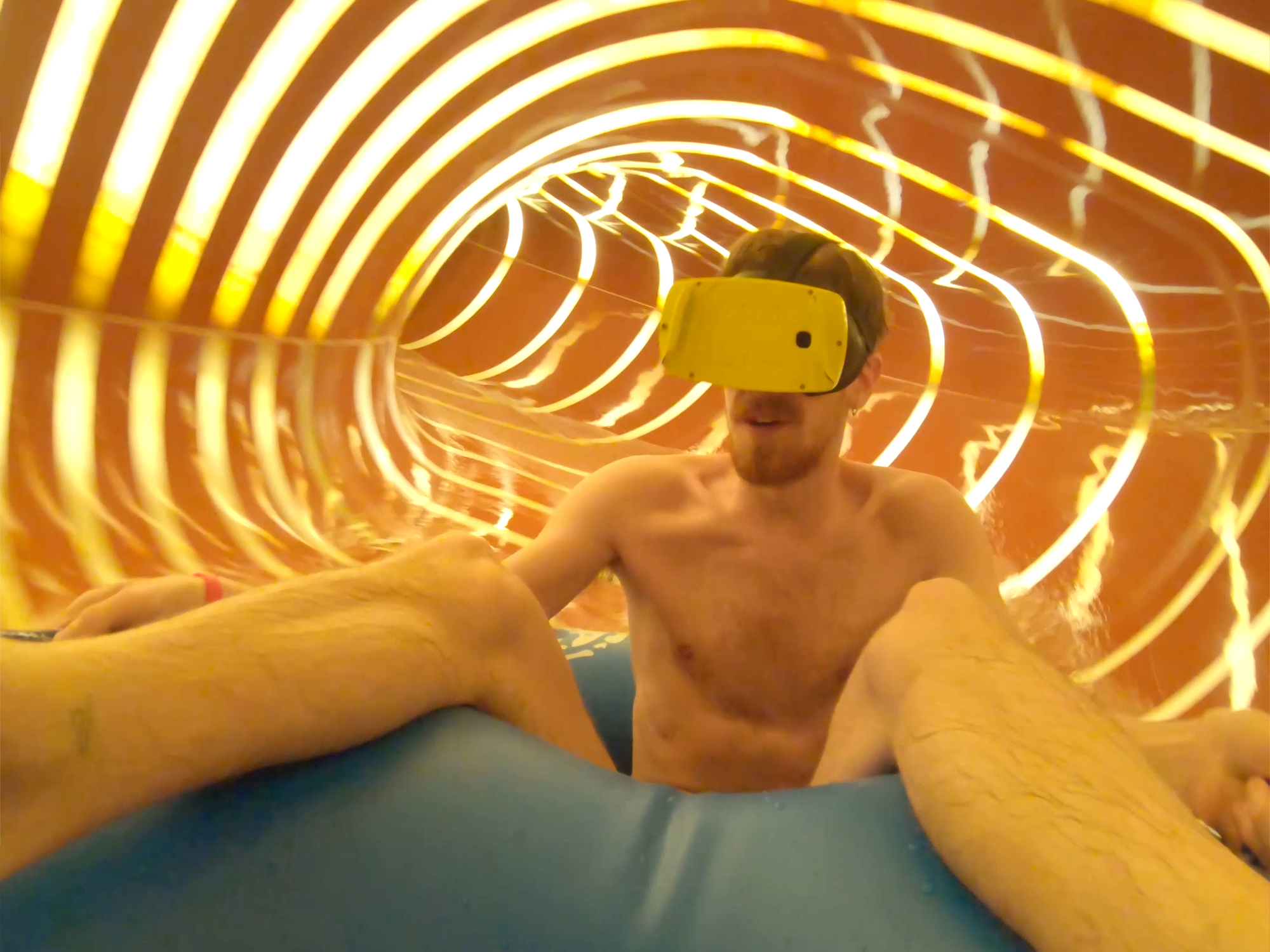 Sätt på ett VR-headset och upplev en virtuell värld medan du åker vattenrutschbana