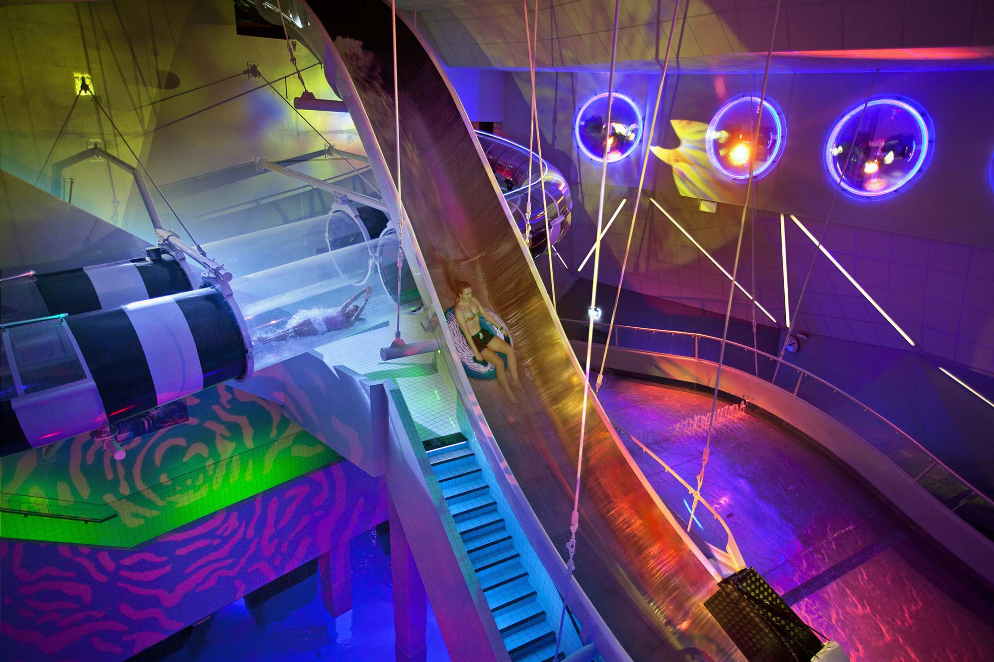 En 140 meter lång vattenrutschbana där du åker både inomhus och utomhus med en fallhöjd på 12 meter