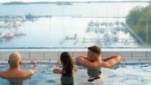 Simma utomhus året runt i en pool med utsikt över Mälaren