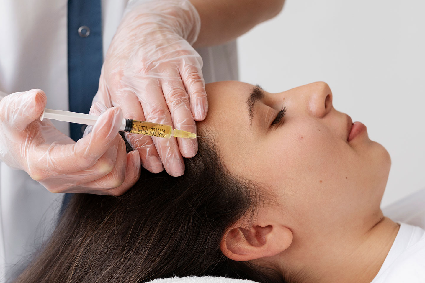 Behandlingen inleds med ett blodprov som tas från patientens arm. Blodet centrifugeras för att separera den blodplätterika plasman, som innehåller viktiga tillväxtfaktorer. Därefter injiceras plasman med tunna nålar i det område som ska behandlas – antingen i hårbotten för att stärka hårsäckarna eller i huden för att främja föryngring.