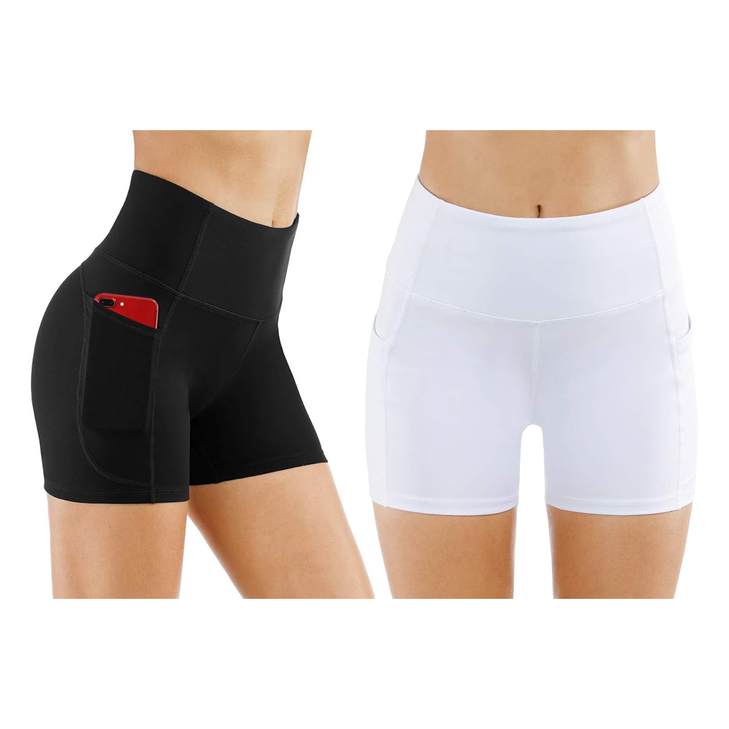 Den höga midjan med bred linning formar och stödjer magen samtidigt som den skapar en smickrande silhuett. Shortsen har dessutom två djupa sidofickor där du kan förvara din mobil eller andra småsaker.