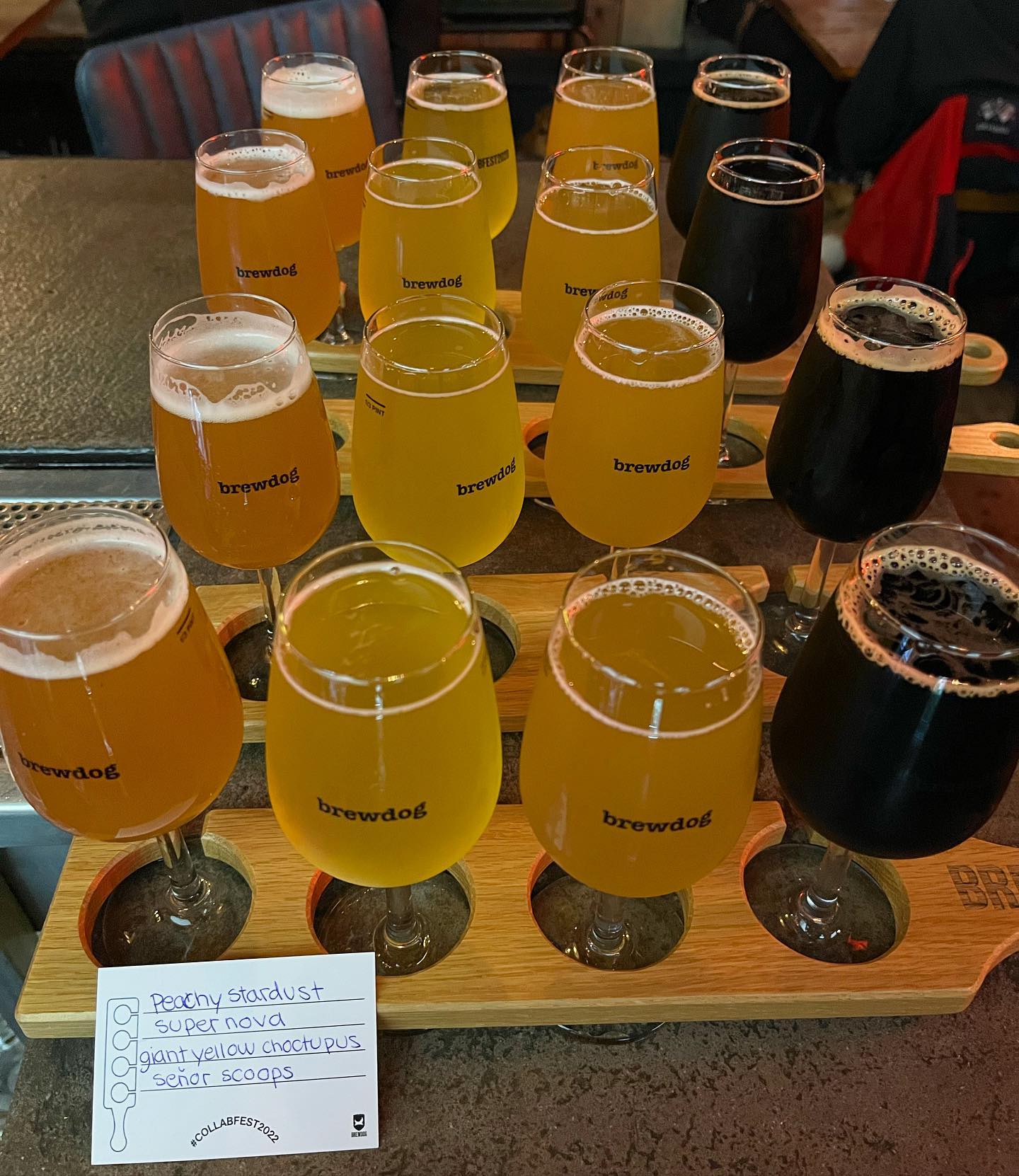 Till burgaren ingår en provningsbricka med fyra hantverksöl, noggrant utvalda för att spegla BrewDogs bredd, karaktär och säsongens smaker. En helhetsupplevelse där mat och öl samverkar i en avslappnad och modern pubmiljö.