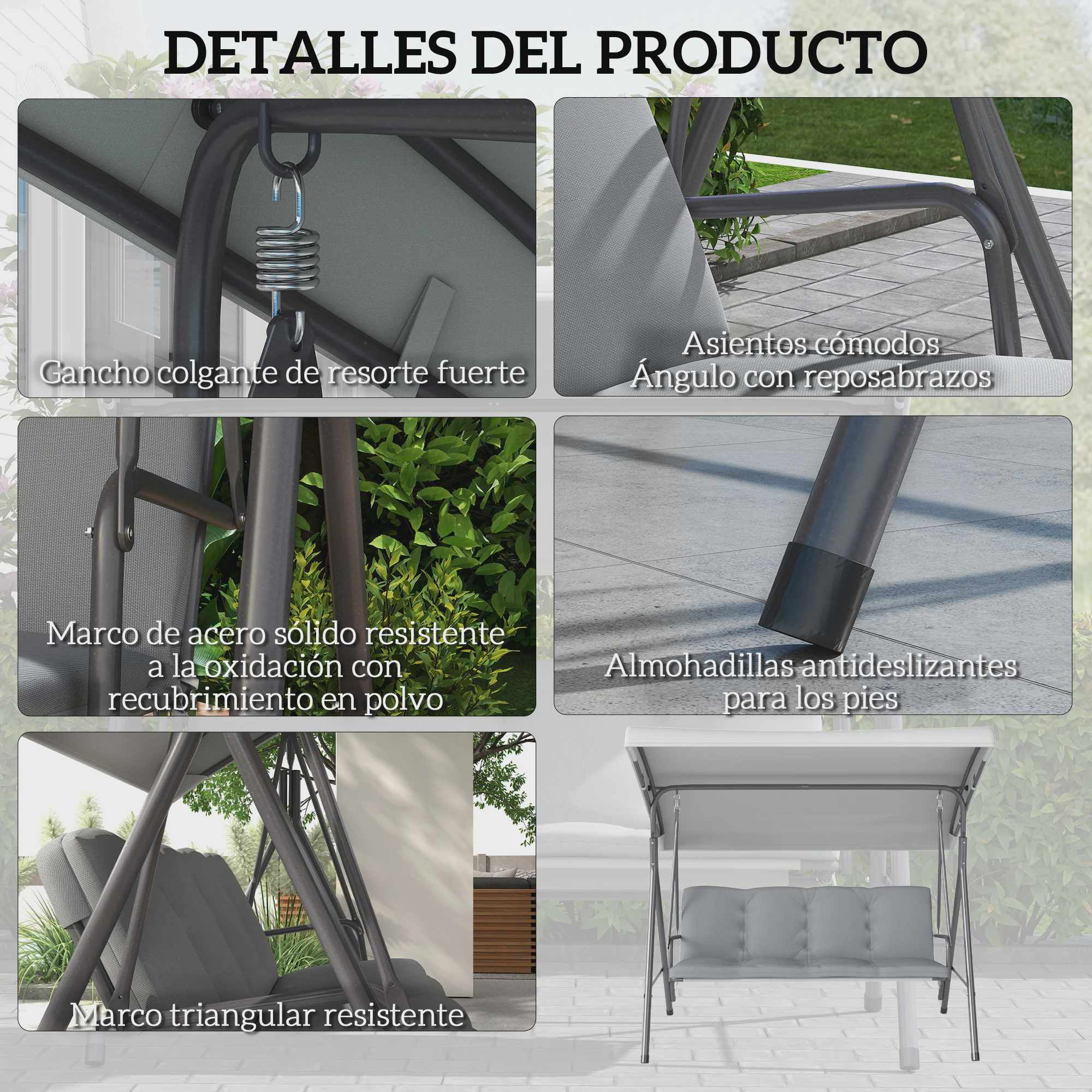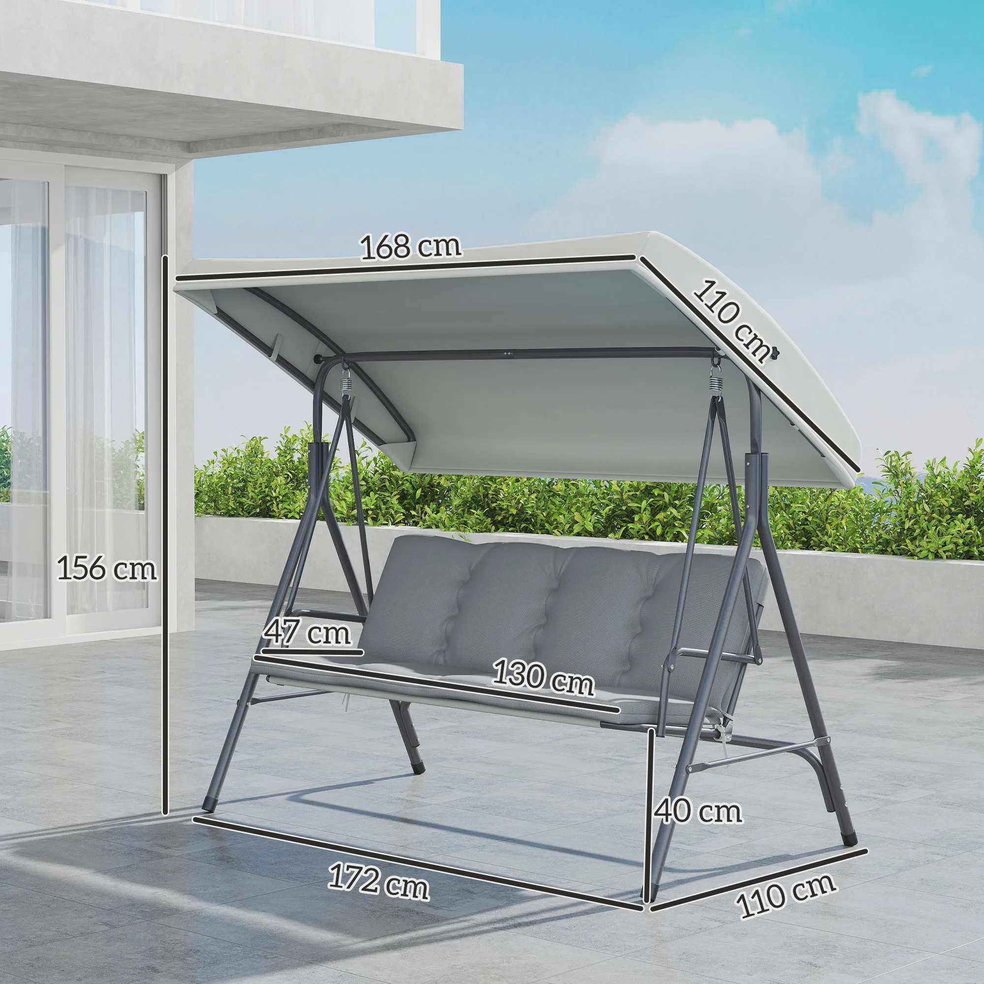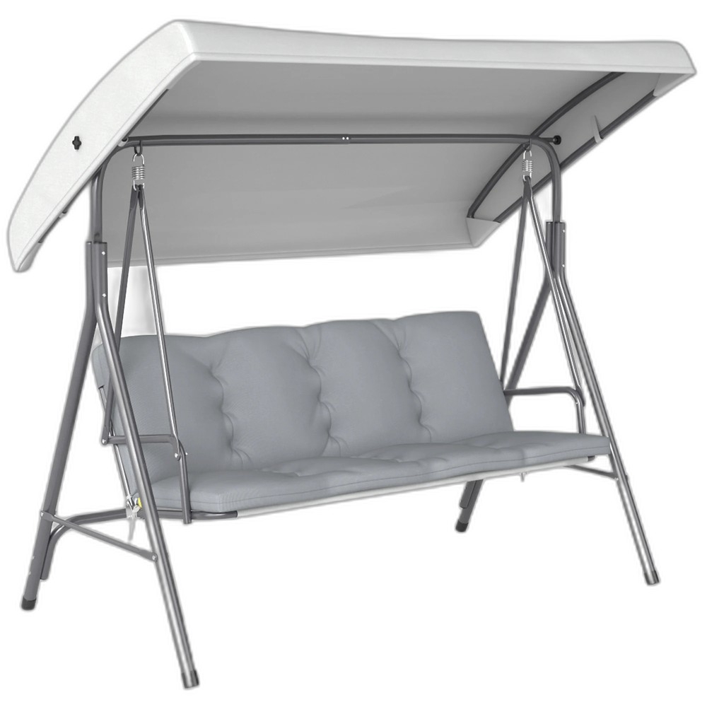 Grå 3-sits trädgårdsgunga med tak – justerbar & bekväm 3-sits Patio Gungsäng med Justerbart Tygskydd