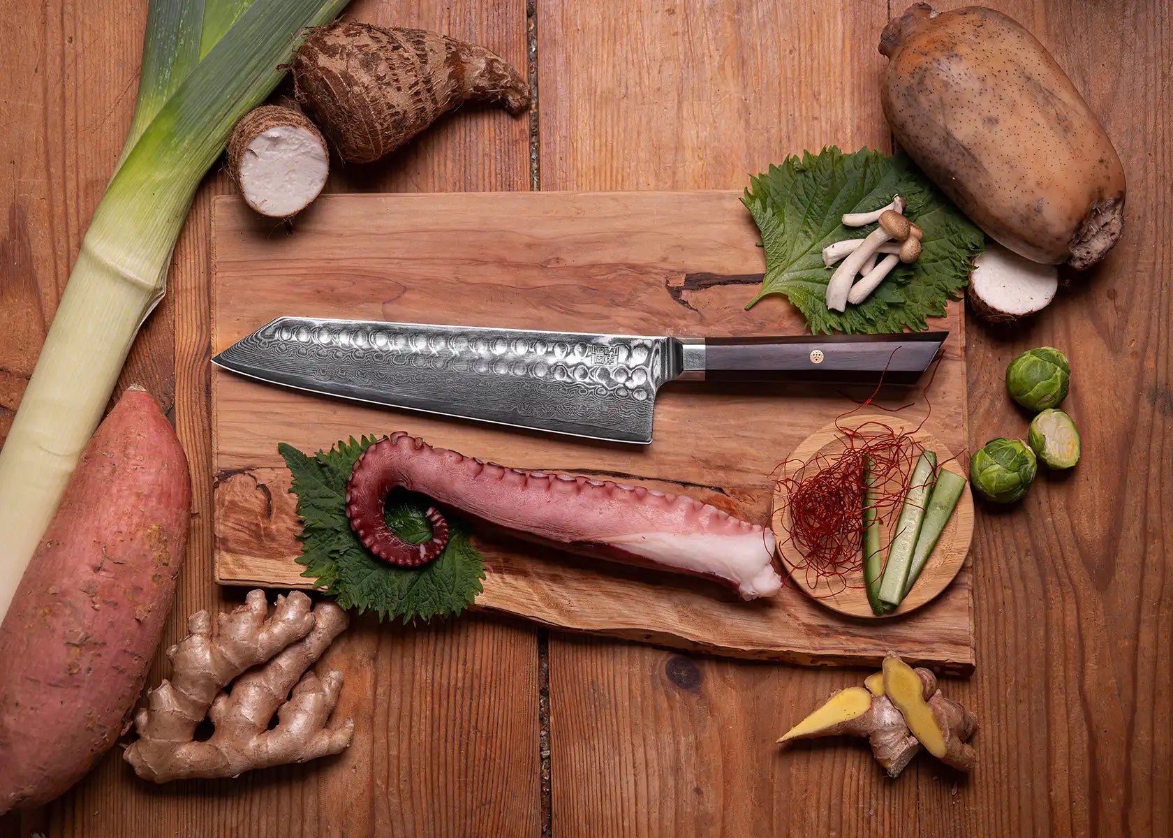 Kiritsuke är en mångsidig japansk kockkniv, älskad av professionella kockar. Det smidda bladet i damaskusstål med AUS-10-kärna kombinerar skärpa, hållbarhet och rostmotstånd. Ett älskat verktyg i köket.