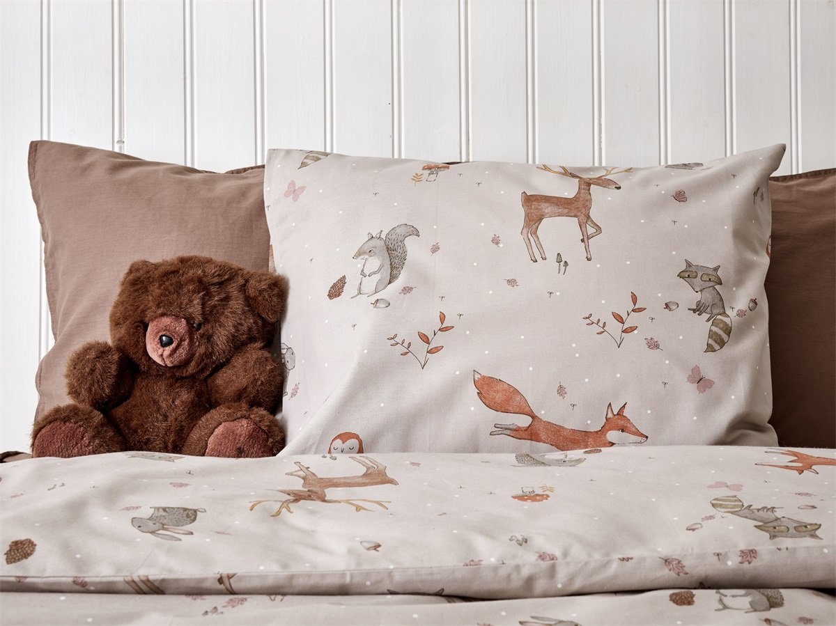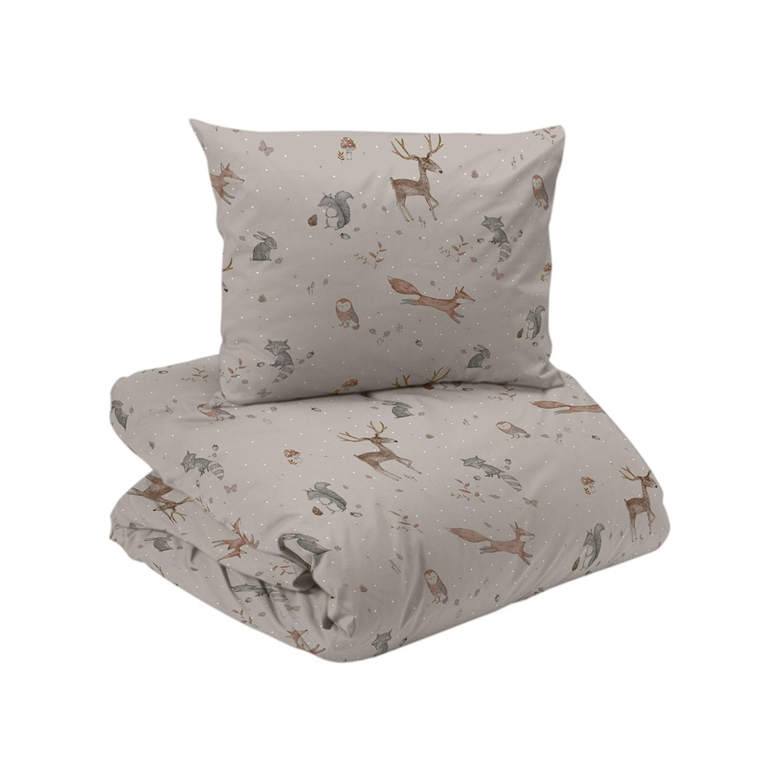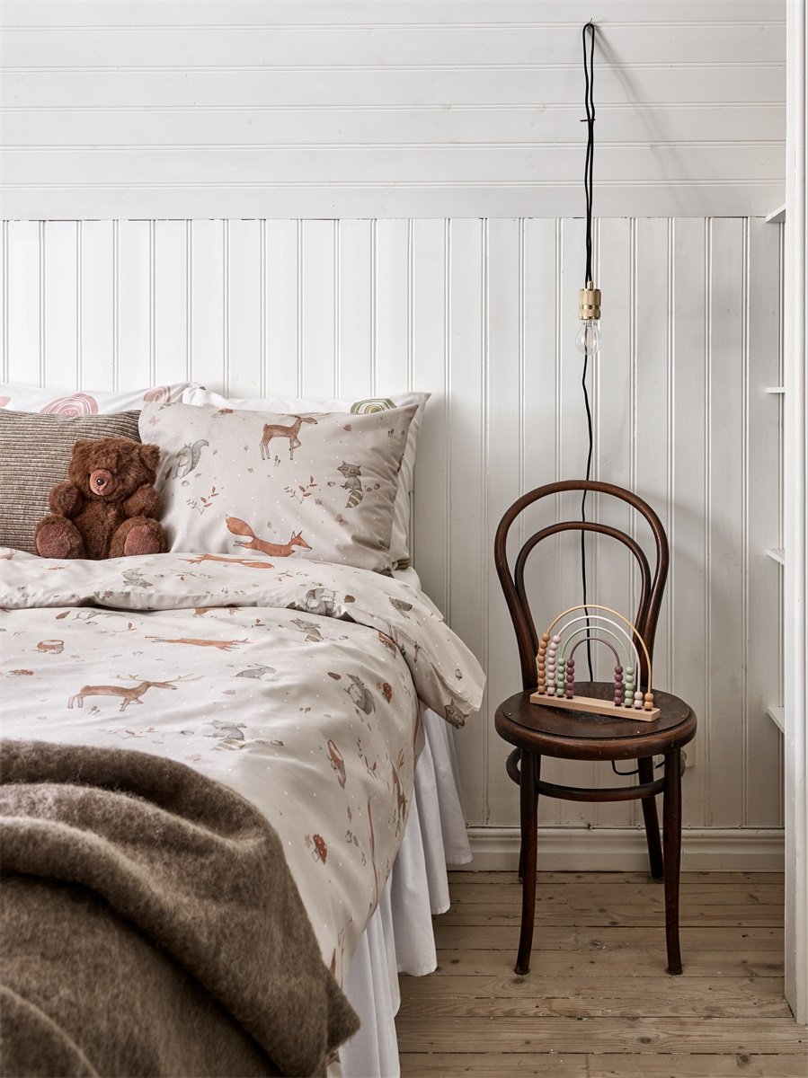 Ett fint bäddset med kaninmotiv som passar perfekt i barnrummet. Setet innehåller två delar och passar täcke i storlek 150 x 210 cm