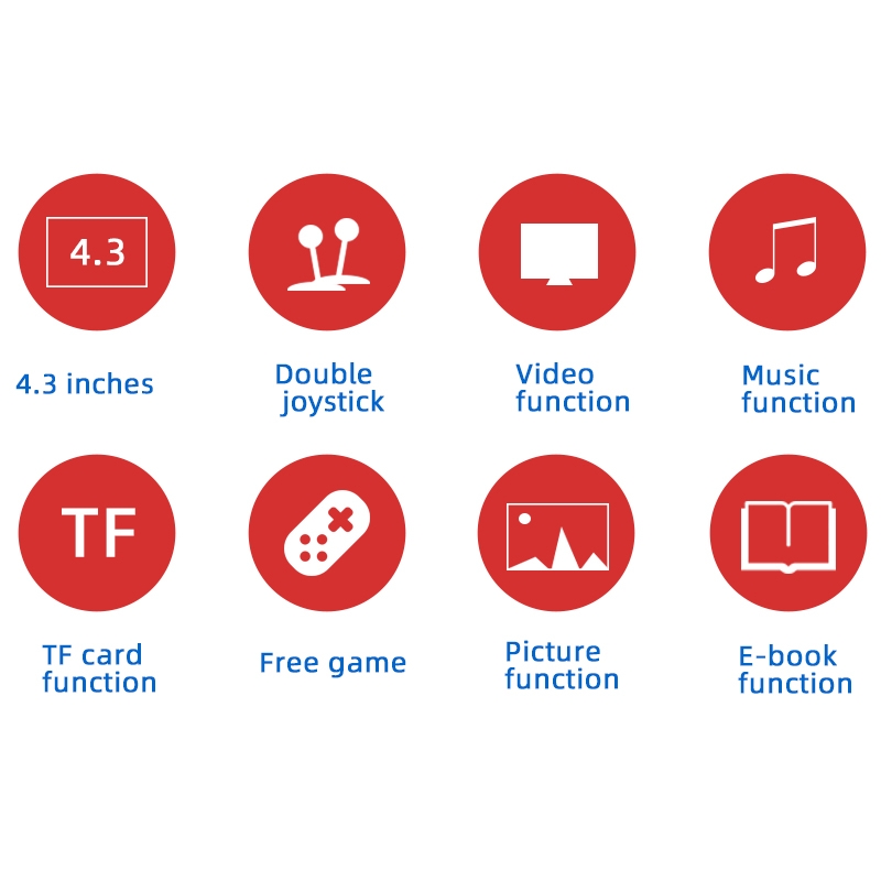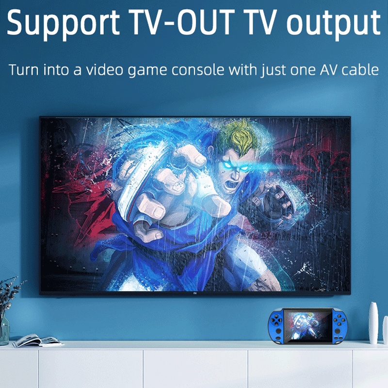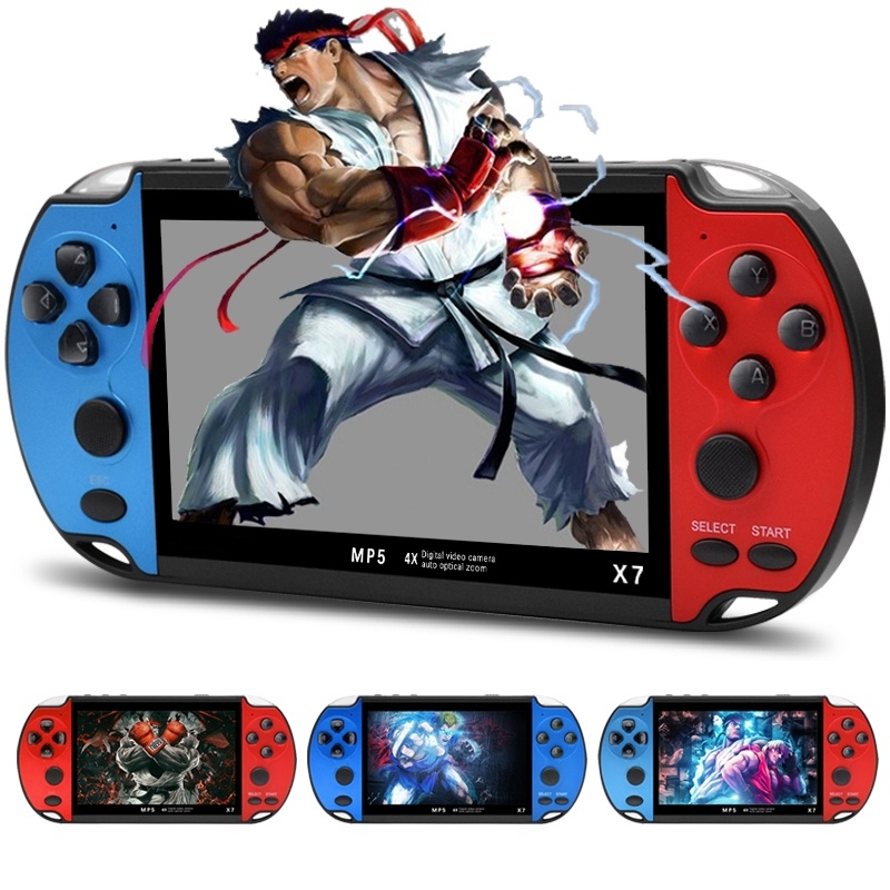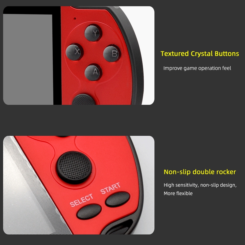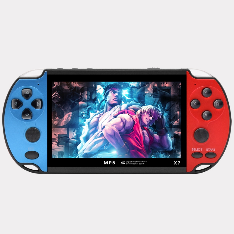 X7 handhållen spelkonsol ger dig över 5000 inbyggda spel i klassiska format. Med en 4.3-tums skärm, stöd för TV-utgång och kompatibilitet med flera retrospelsystem blir det en komplett spelupplevelse. Välj mellan blå, blå-röd eller röd design.