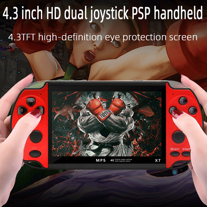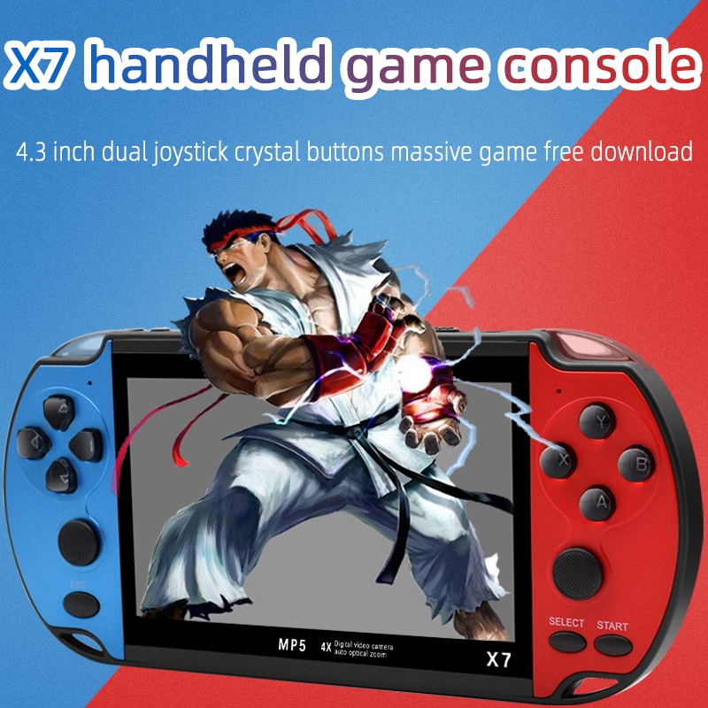 Upptäck X7 handhållen spelkonsol 4.3” med 5000 spel. Stöd för flera retroformat, TV-utgång och filmer. Perfekt för gaming i fickformat.