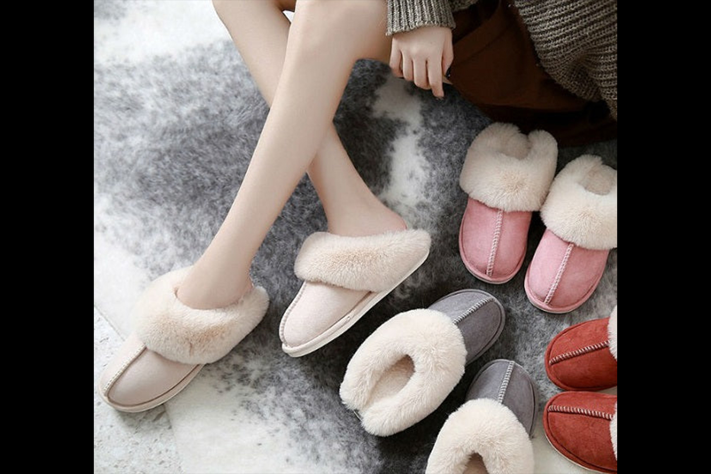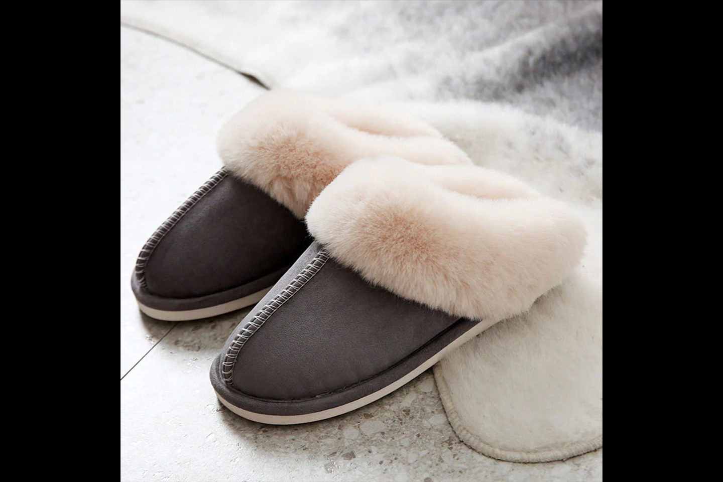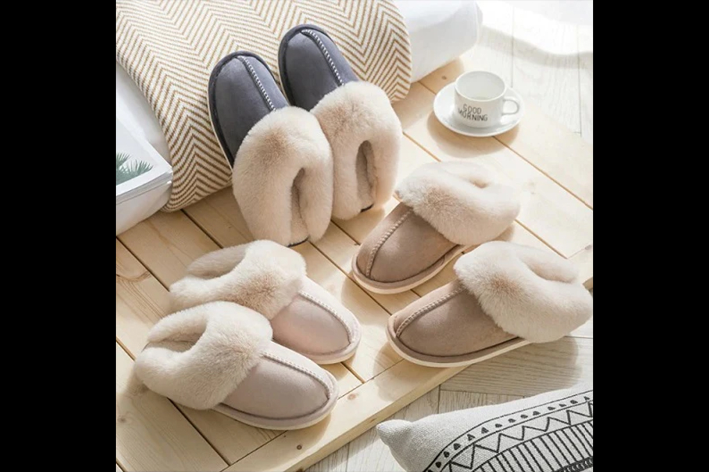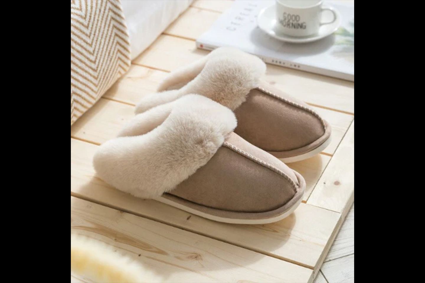 Klassiska tofflor, utrustade med en mjuk ytterkant och insida, ger behaglig komfort och håller fötterna varma.