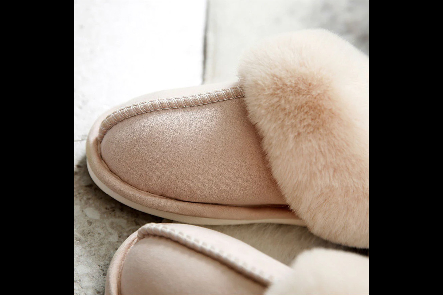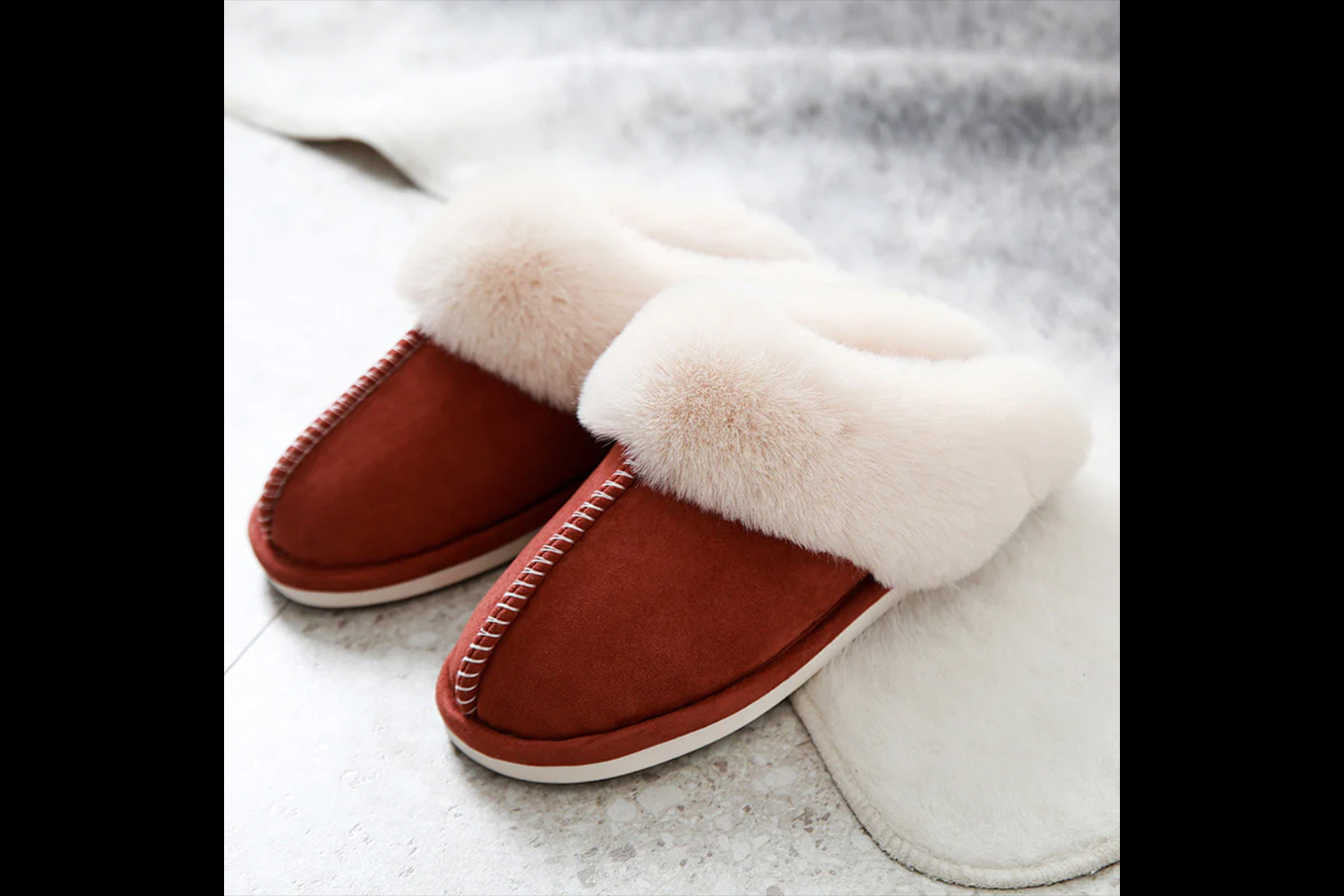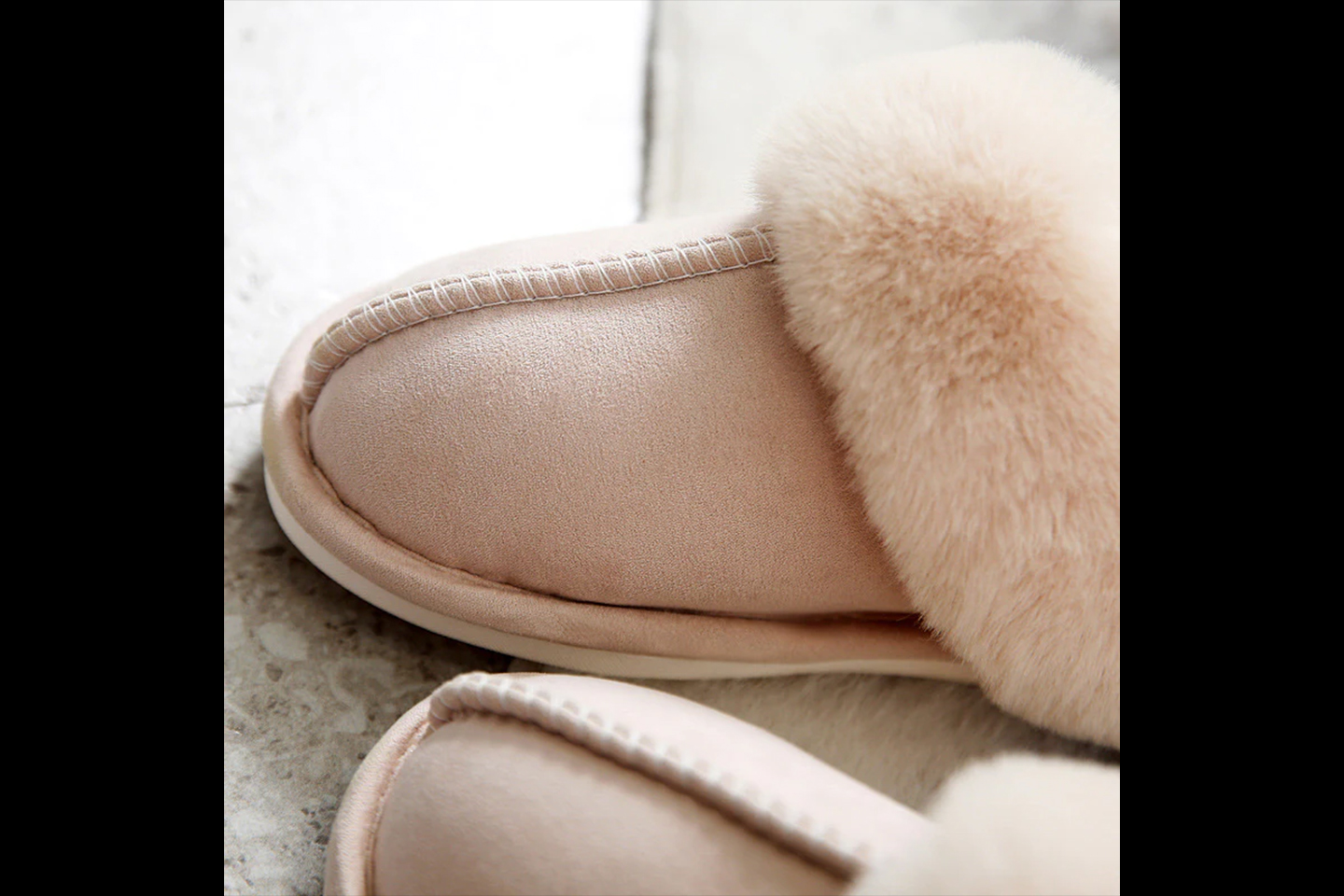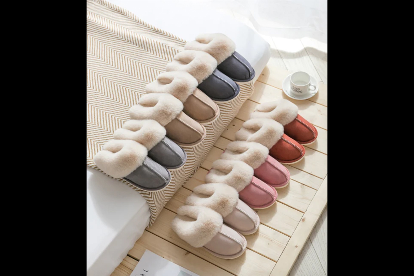 Klassiska tofflor, utrustade med en mjuk ytterkant och insida, ger behaglig komfort och håller fötterna varma.