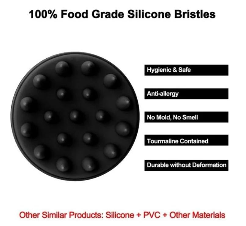 Denna hårbotten borste har mjuka och flexibla silikonpiggar som försiktigt exfolierar din hårbotten samtidigt som den stimulerar