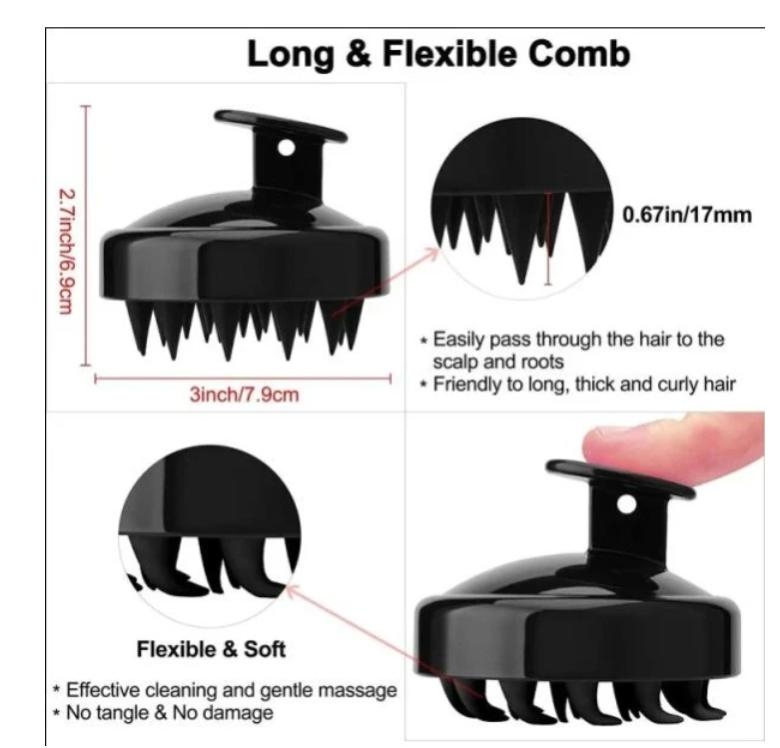 Denna hårbotten borste har mjuka och flexibla silikonpiggar som försiktigt exfolierar din hårbotten samtidigt som den stimulerar din blodcirkulation. Hårbottenborsten hjälper till att få en sund hårbotten som är fri från mjäll, klåda och torrhet. Massageborsten avlägsnar döda hudceller, mjäll, fett och smuts.