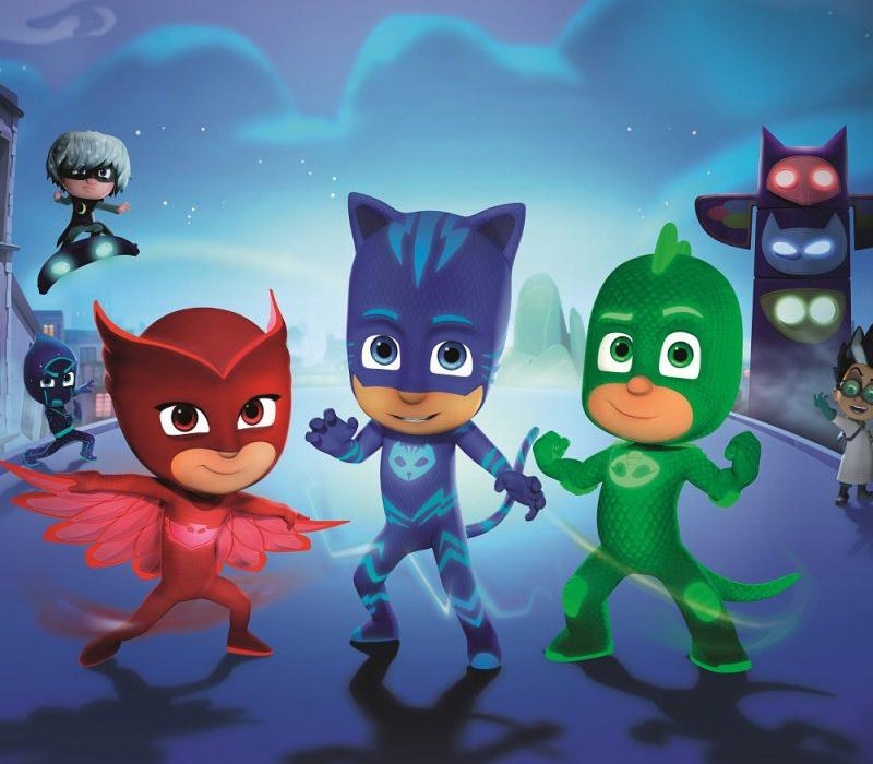 Maskeraddräkt för barn inspirerad av Pyjamashjältarna – välj mellan Kattpojken, Ugglis eller Gecko.