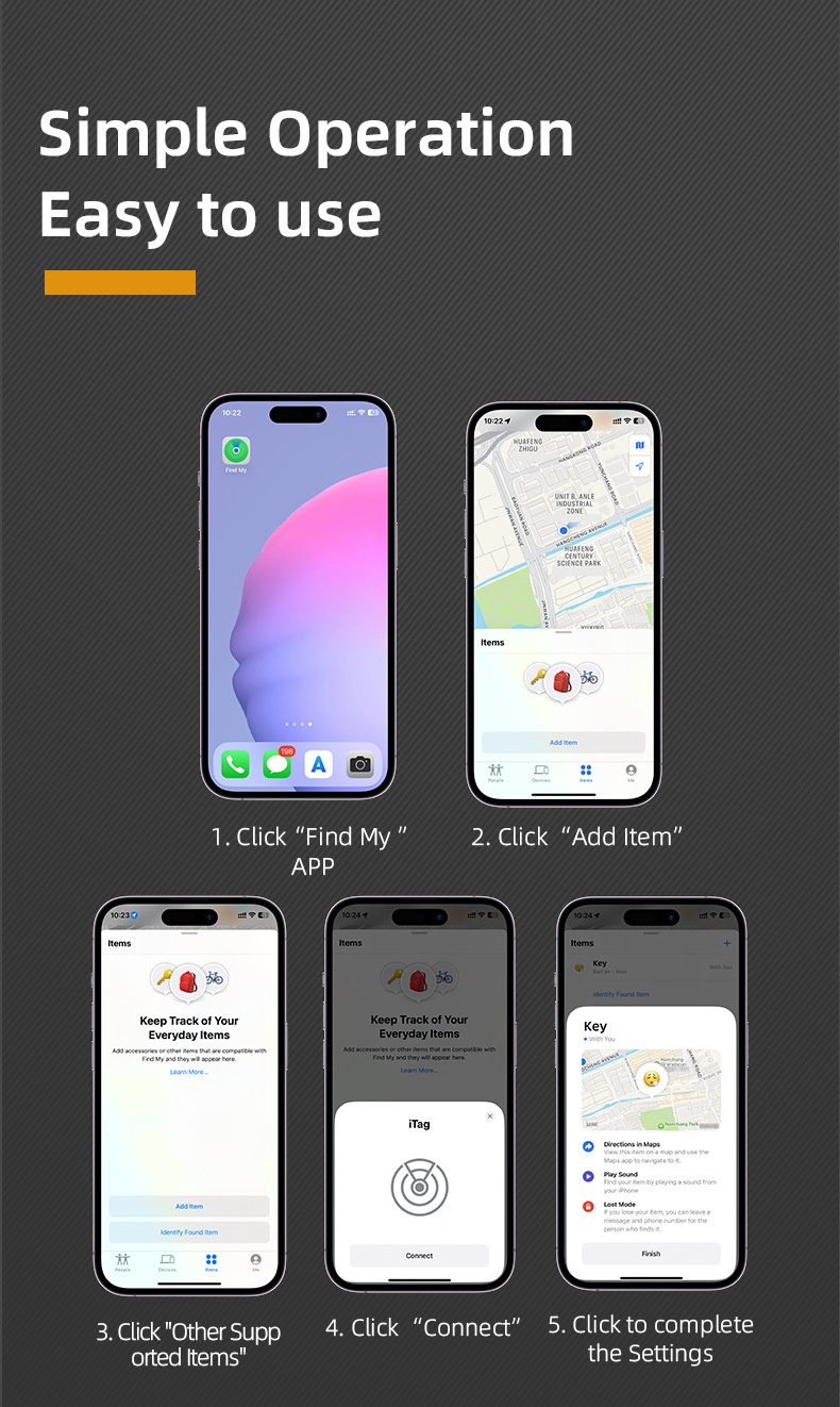 - Kompatibel med Apple Find My – spåra i realtid