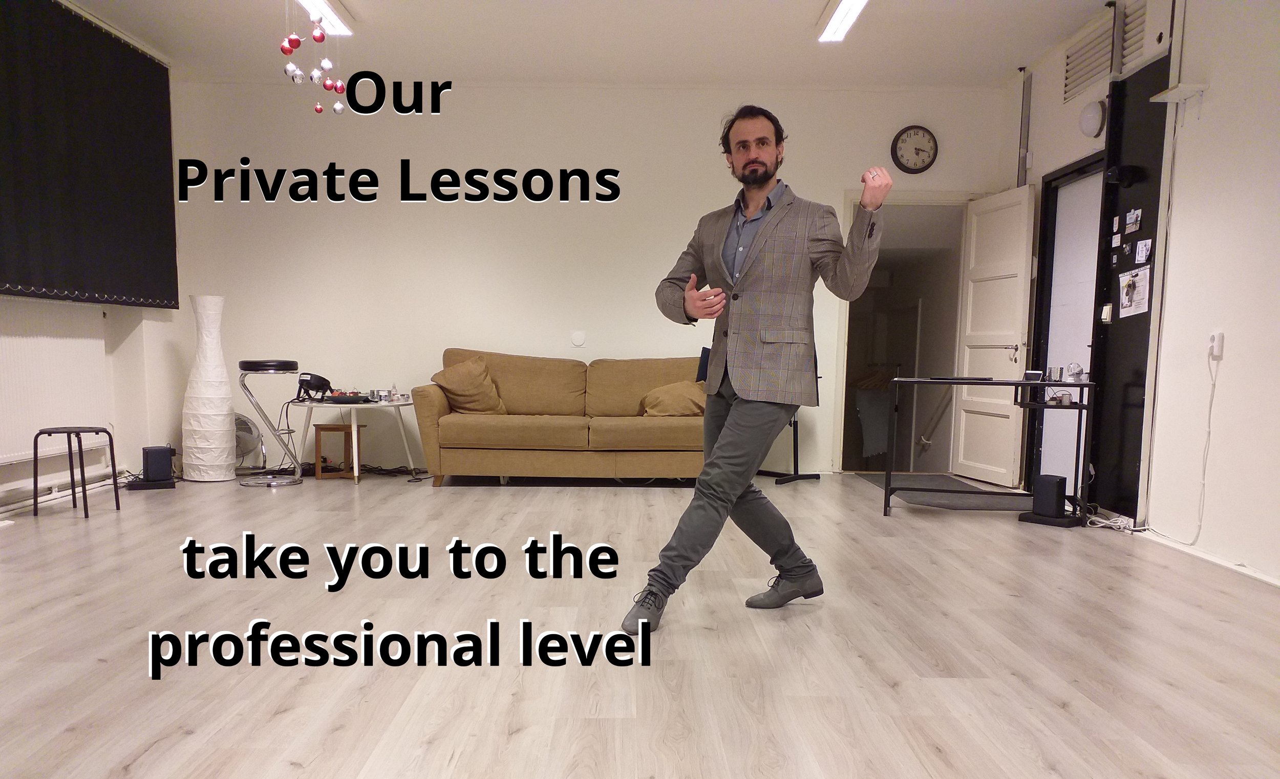 Privata lektioner är ett alternativ för dig som vill lära dig snabbt eller fördjupa dig i att förbättra din dans och förstå din kroppsrörelse. Nu har du möjligheten att lära dig att dansa tango snabbt och grundligt i en privat miljö. Lektionerna har samma pris oavsett om du deltar ensam eller som ett par. Det är en utmärkt möjlighet för par eller vänner - i dans eller i livet - att lära sig tango. Varje lektion håller på i 60 minuter.