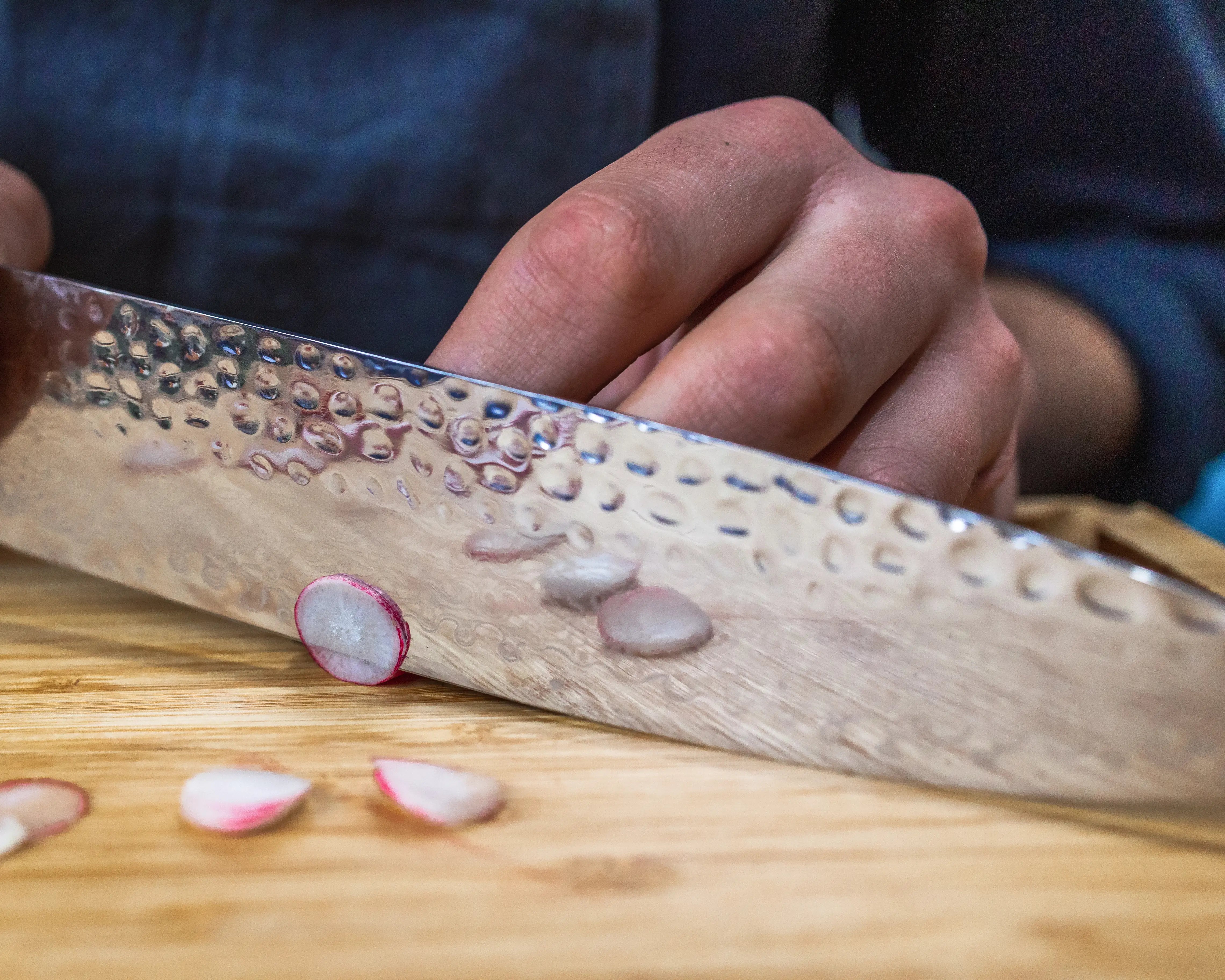 - Andra sidan är helt slät – perfekt för att skopa upp hackade örter och torra ingredienser