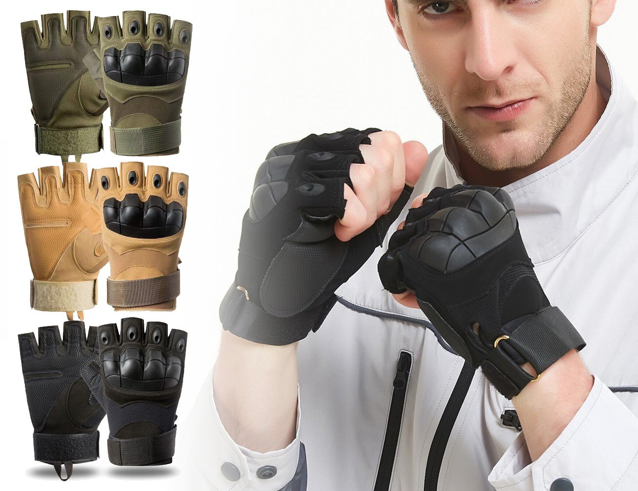 Dessa robusta halvfingerhandskar är designade för den aktiva användaren. Med sin taktiska militärlook är de inte bara stiliga, men också funktionella för sport, skjutning, jakt, airsoft och cykling.