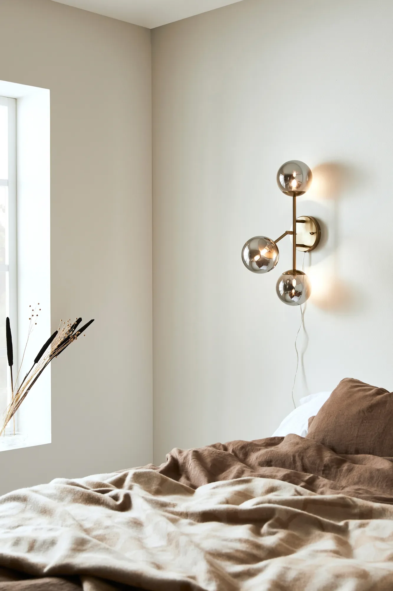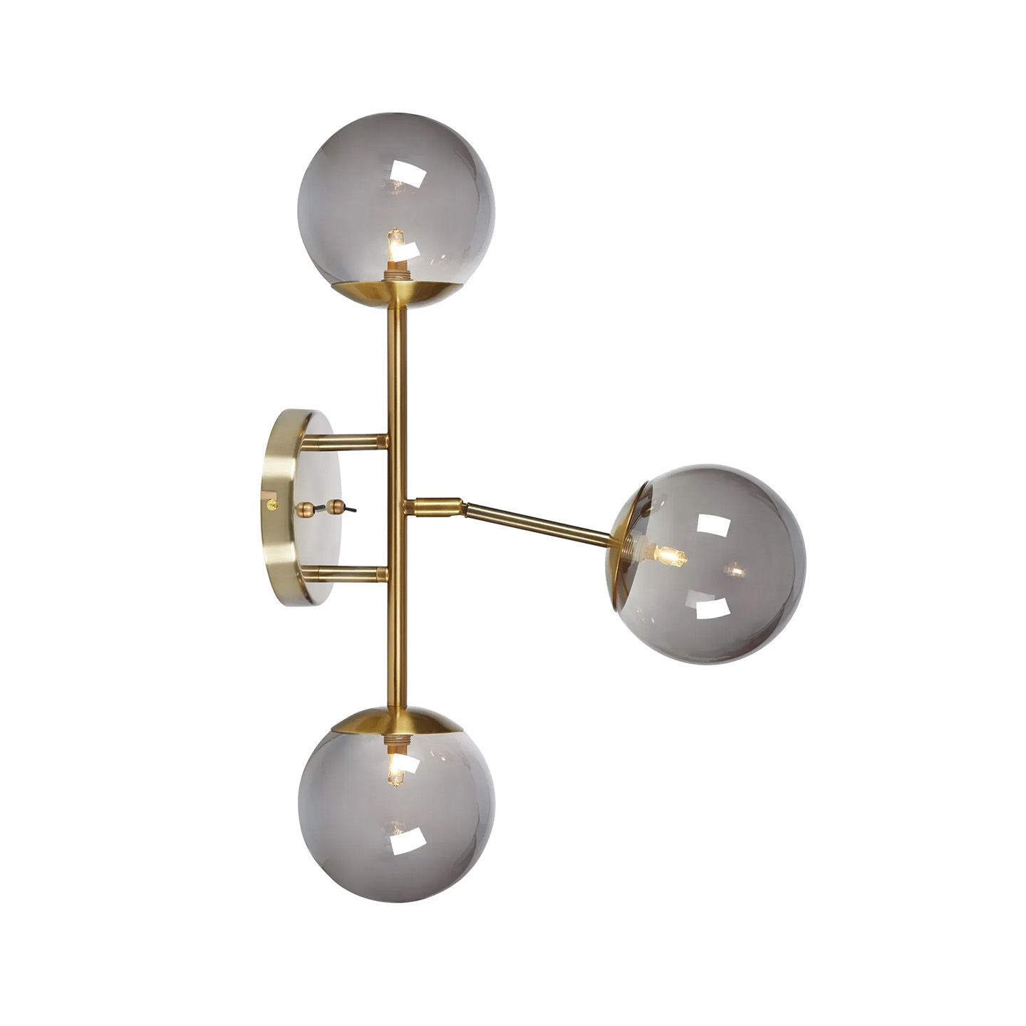 En karaktärsfull och elegant vägglampa med rökfärgat glas och väggfäste i mässing. Trinity blir ett trevligt tillskott i t.ex. hallen eller sovrummet.