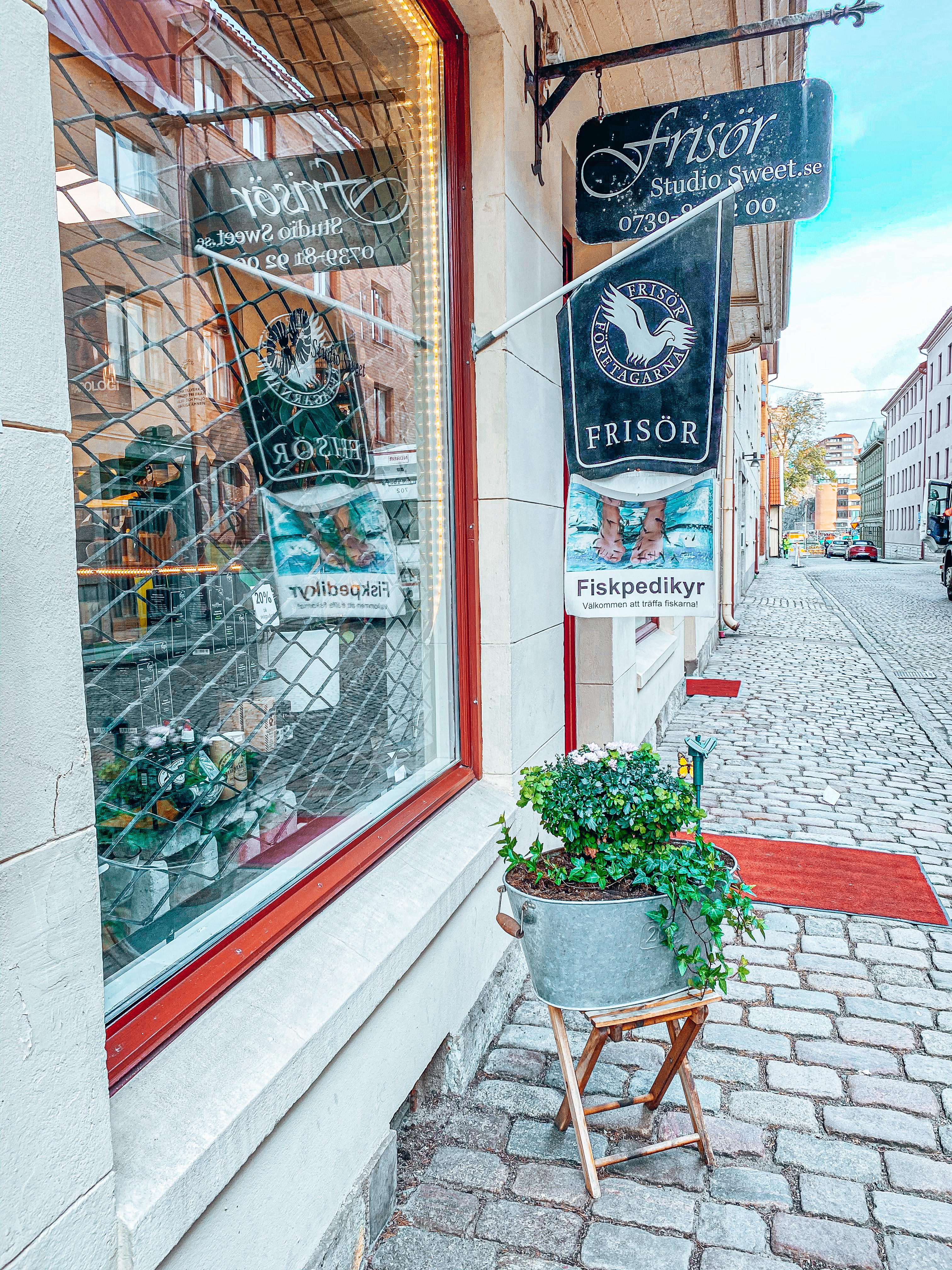 På Husargatan i Haga hittar du Studio Sweet. Här utför erfaren personal allt ifrån klippningar, färgningar, extensions, antifriss-behandlingar och rakning. Ja, och fiskspa-behandlinga då, så klart.