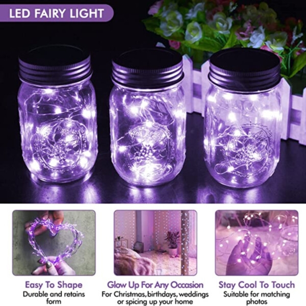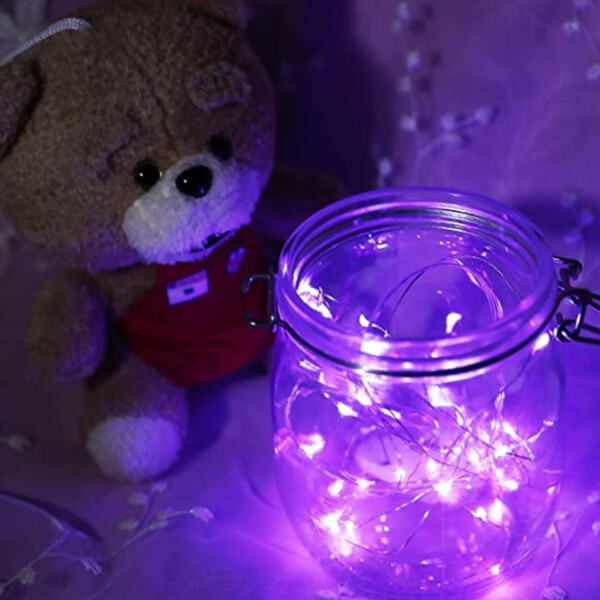 Denna Mini LED-ljusslinga i lila är perfekt för att skapa en magisk och förtrollande atmosfär under fester och högtider, eller bara för att ge ditt hem en extra touch av glamour och elegans. Så om du vill skapa en stämningsfull och romantisk atmosfär eller bara vill lägga till lite extra mystik till din inredning, är den här slingan det perfekta valet!