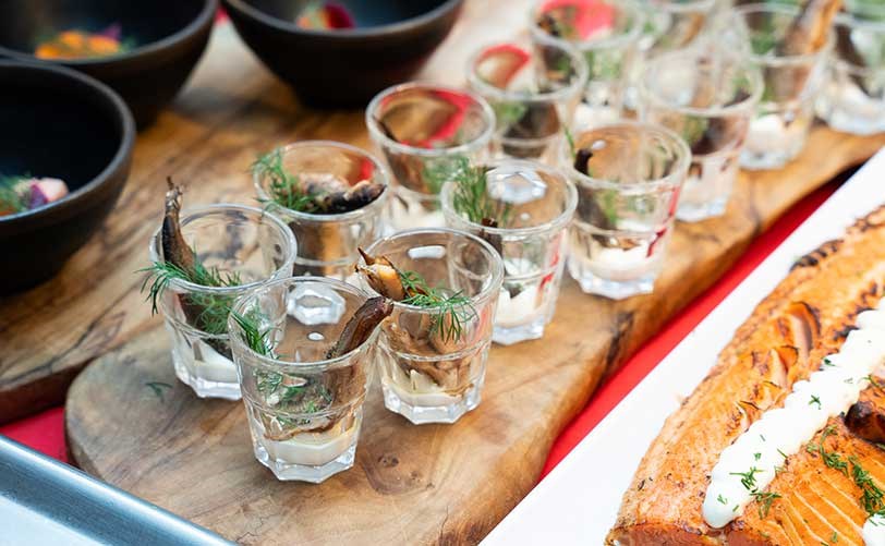 En härlig julbordsbuffé dukas upp med svenska klassiker tillagade med många lokala råvaror. Buffén inleds med Östersjöns största utbud av egen inlagd sill, flera strömmingsrätter och klassiska laxanrättningar. Här finns också ett brett urval av nordiska skaldjur, tillsammans med många vegetariska och veganska alternativ. På buffén väntar nygriljerad skinka, krispig grönkål och ris à la Malta – allt som hör julens smaker till. Vin, öl, läsk och kaffe ingår.