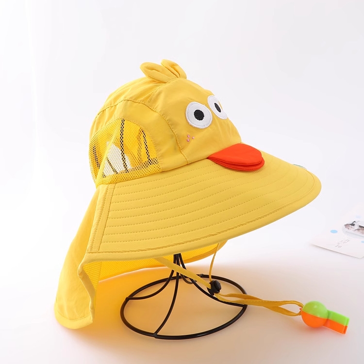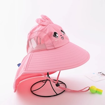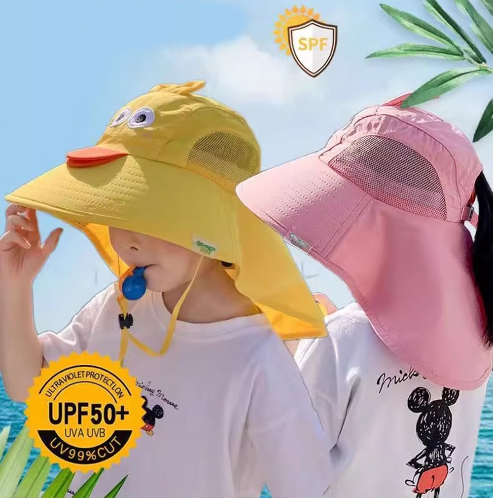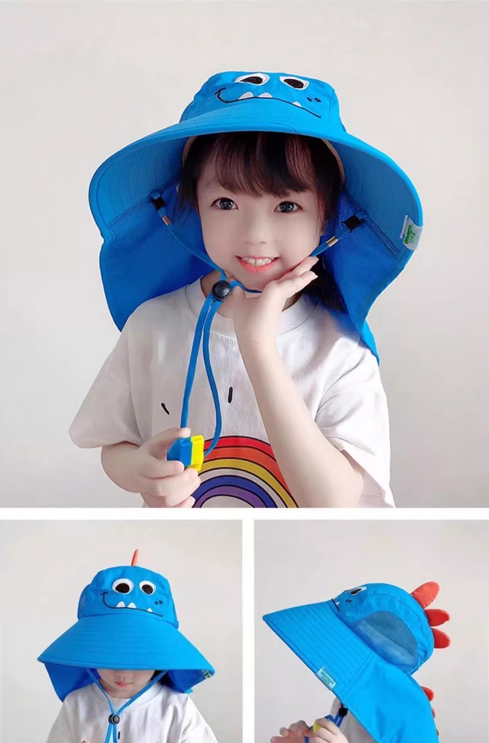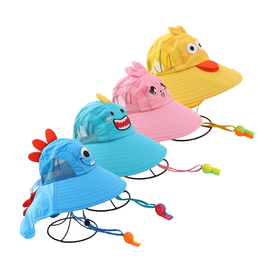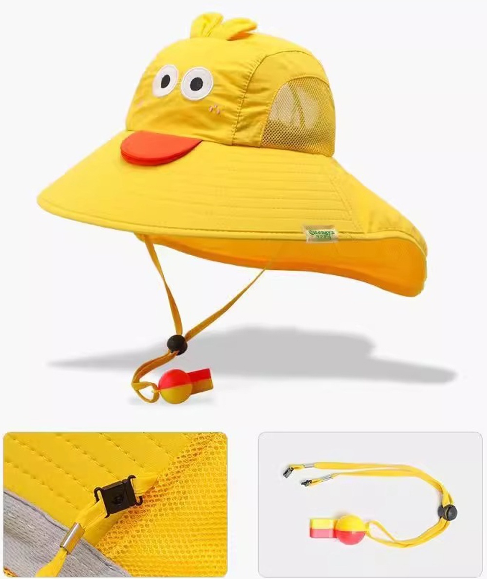 Söt barnsolhatt med UPF50+ UV-skydd, visselpipa och justerbar passform – perfekt för lek i solen!