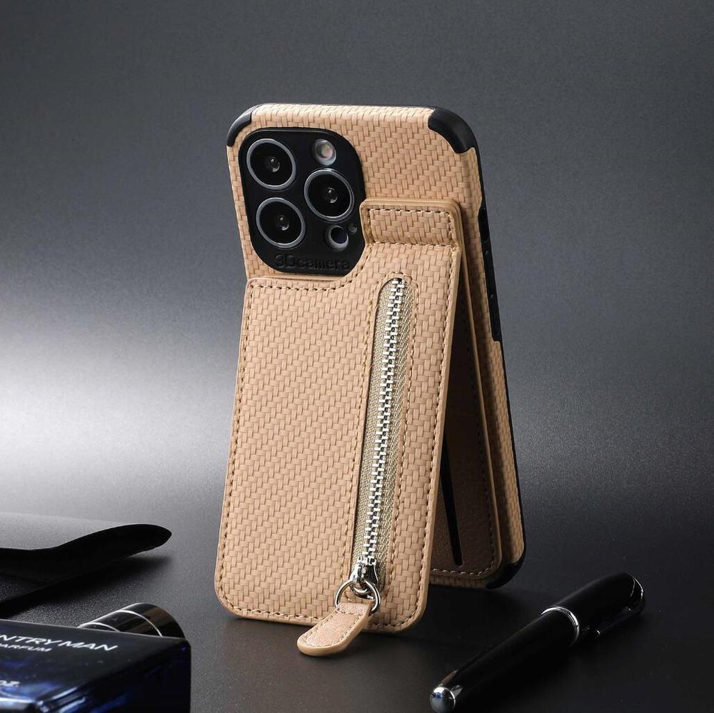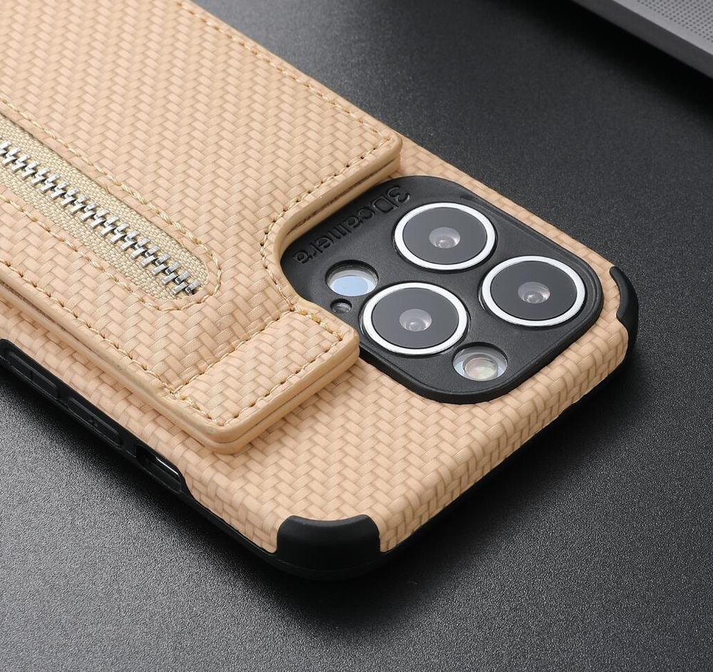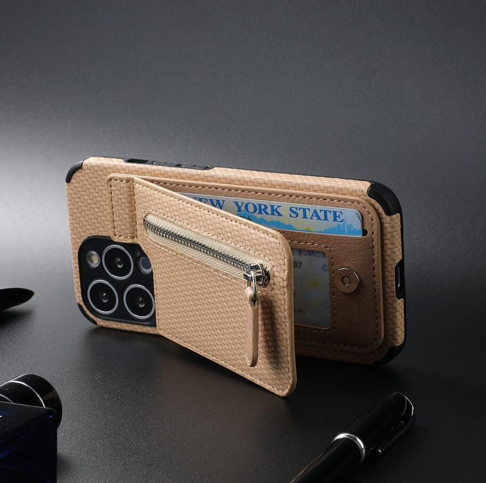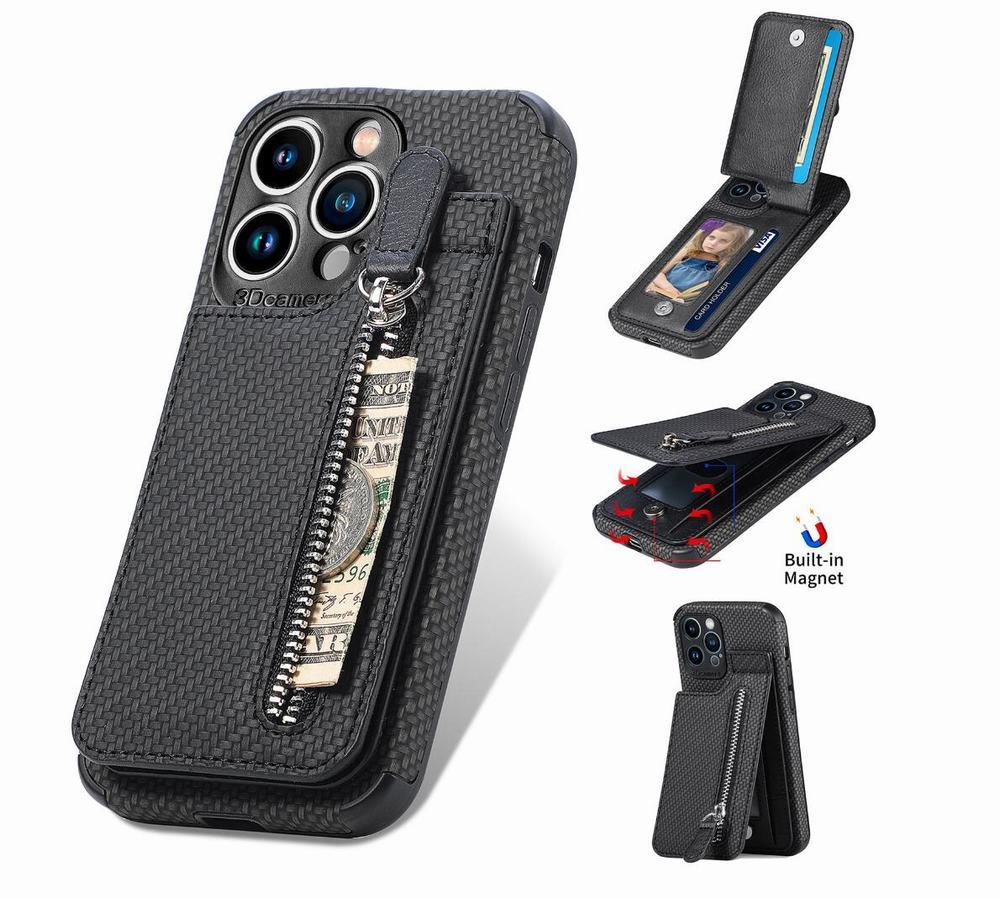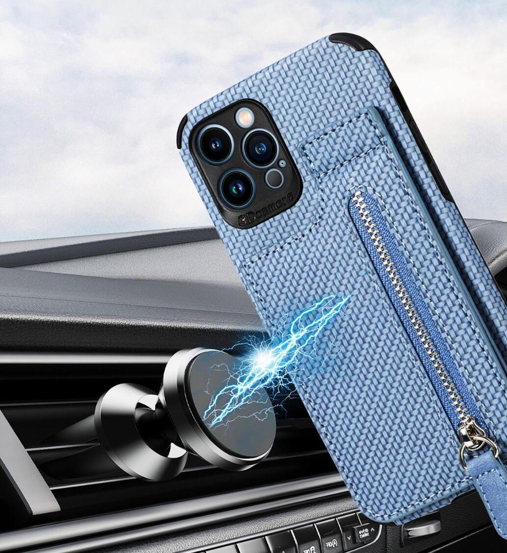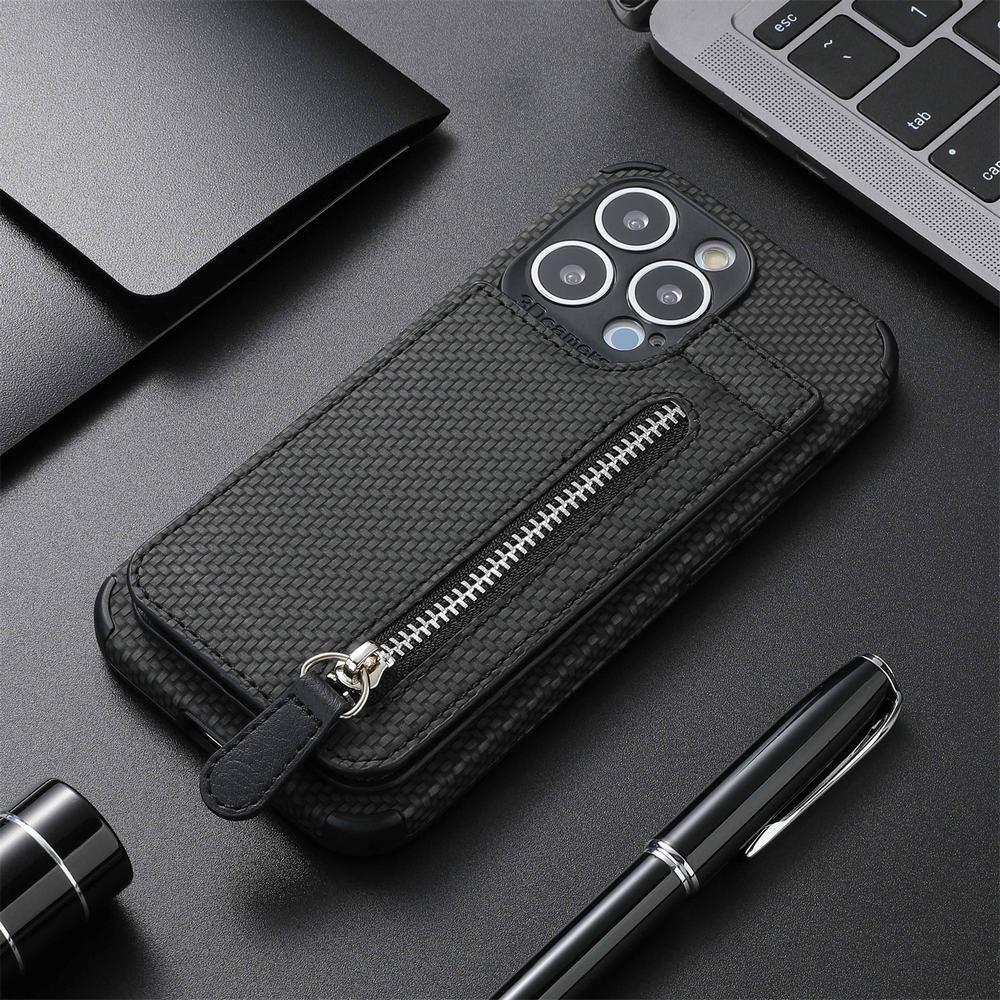 Vårt 'KarbonMag Max' erbjuder en robust iPhone-skal i karbonstil, utrustad med en avtagbar korthållare och ett praktiskt myntfack. Förutom att erbjuda skydd mot stötar, damm och repor, har detta skal