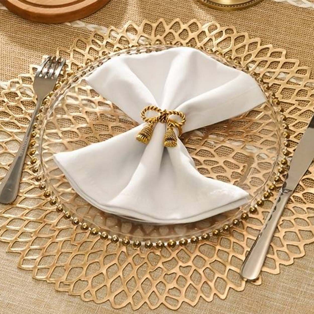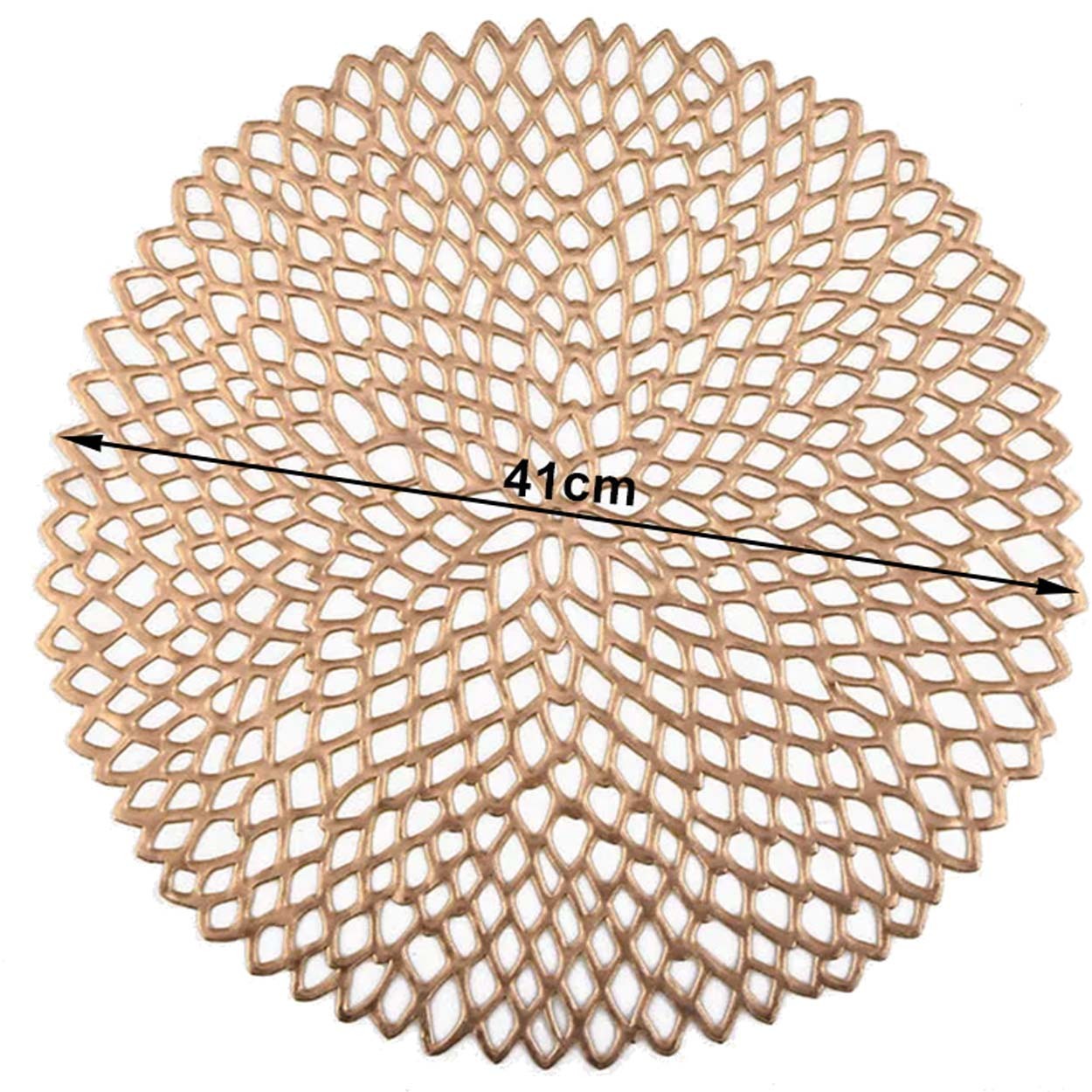 Med en diameter på 41 cm är detta underlägg ett flexibelt val för alla typer av dukningar. Det finns i två färger, guld och silver, så det är lätt att hitta en som passar just din stil. Perfekt för både vardagsmiddagar och festliga tillfällen!