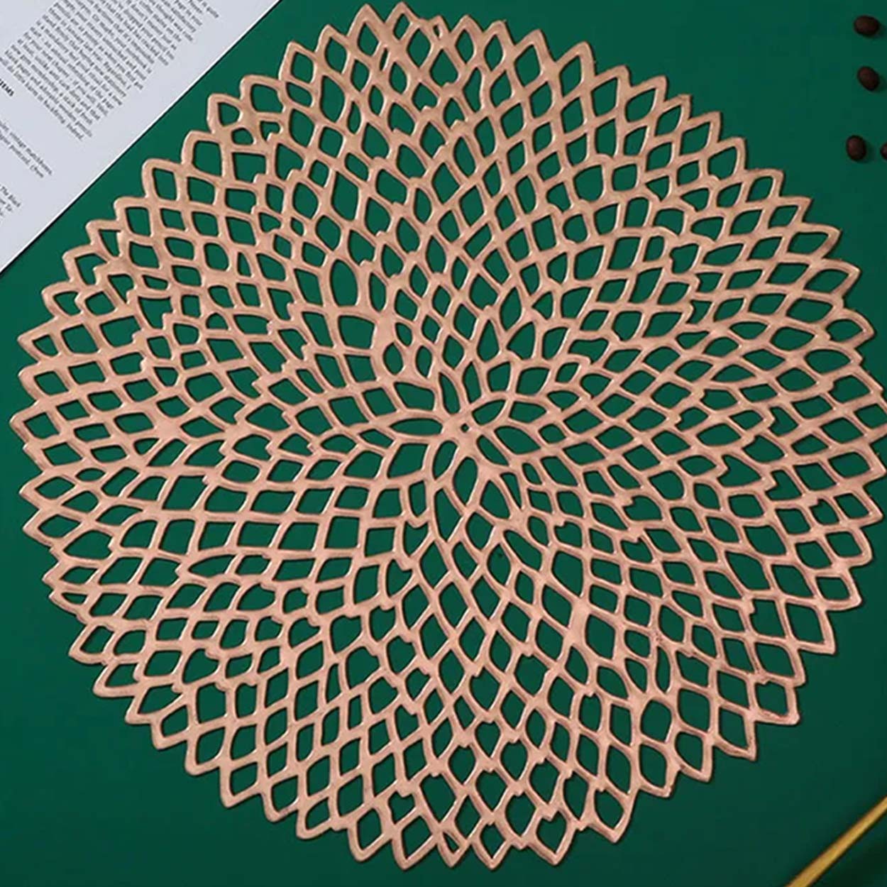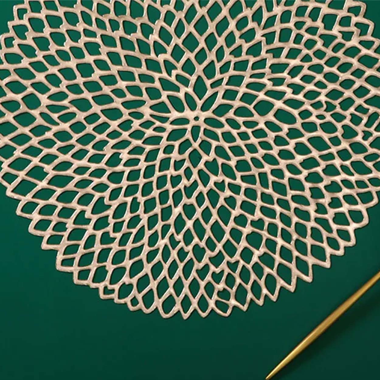 Sätt guldkant på vardagen med runda bordsunderlägg i öppen design! Med stilren look och smart funktion är dessa underlägg det självklara valet för dig som vill ha både skydd och elegans vid varje måltid.