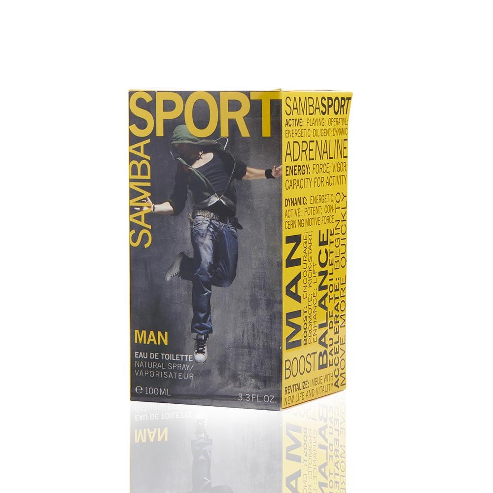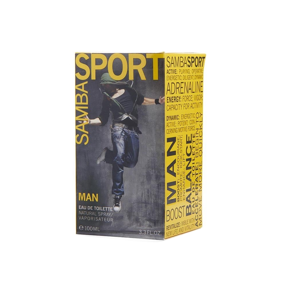 Samba Sport Man öppnar med en frisk citrusexplosion av bergamott blandad med en söt splash av litchi och koriander. Den balanserande hjärtnoten kombinerar uppfriskande vattenkrasse och blommiga noter blandade med ljust trä. I en flytande utveckling utgör basnoterna en kraftfull kombination av myskamber och träiga toner.