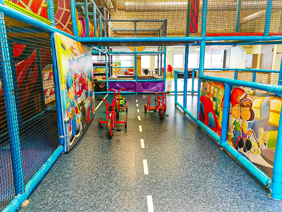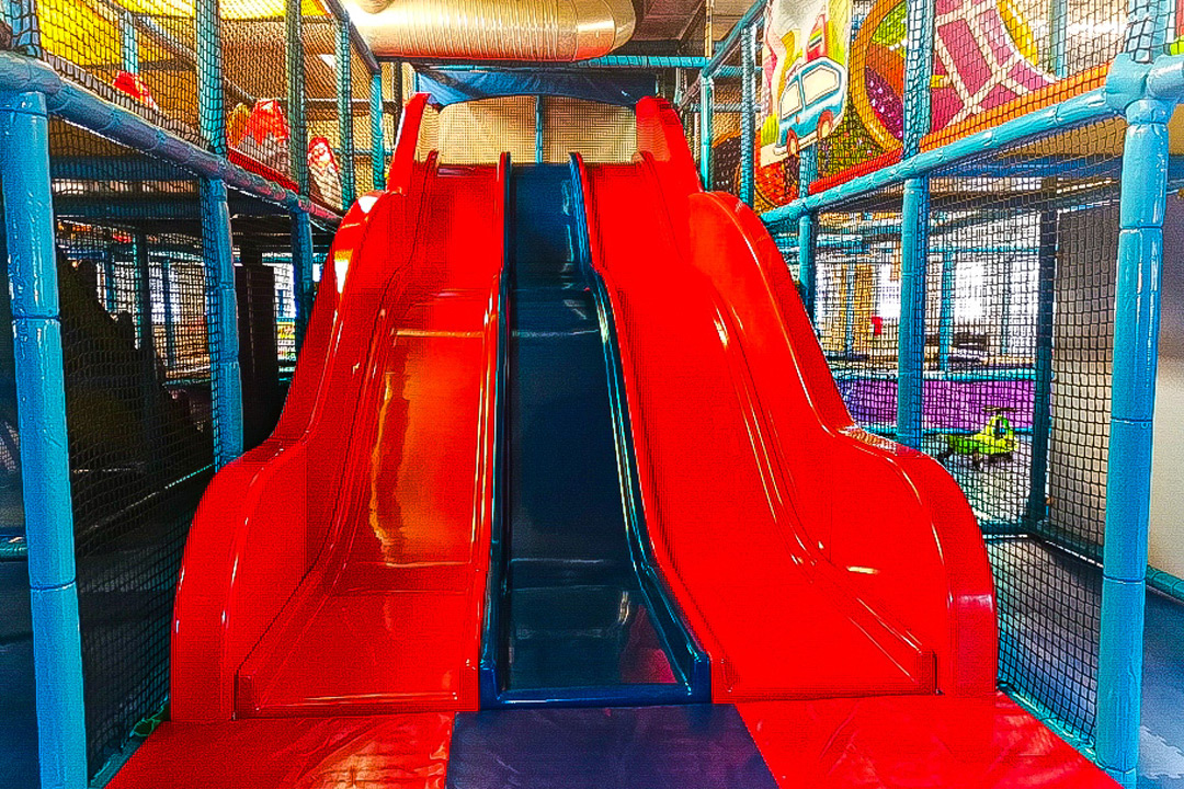 Ett paradis för leksugna barn. Ett lekland fullt av äventyr där både stora och små kan klättra, hoppa, springa och utforska i en trygg och rolig miljö. Här finns allt från klätterställningar och rutschkanor till mysiga hörn där fantasin får flöda fritt. Barnen kan busa runt, leka kurragömma och skapa sina egna äventyr tillsammans med vänner och syskon. I caféet kan du lyxa till det med svalkande läsk efter allt spring, gott kaffe till de stora, godis och nybakade bakverk för den sötsugna. Om du är hungrig kan du köpa en smarrig smörgås, pannkakor eller varför inte en god pizza? Vegetariska och allergivänliga alternativ finns tillgängliga.