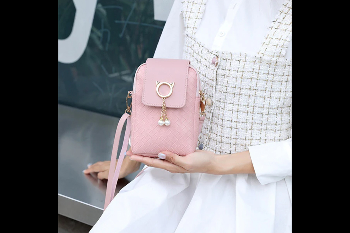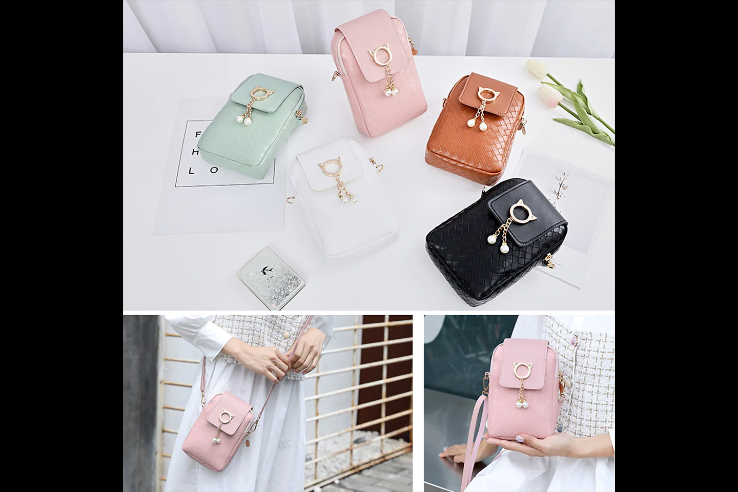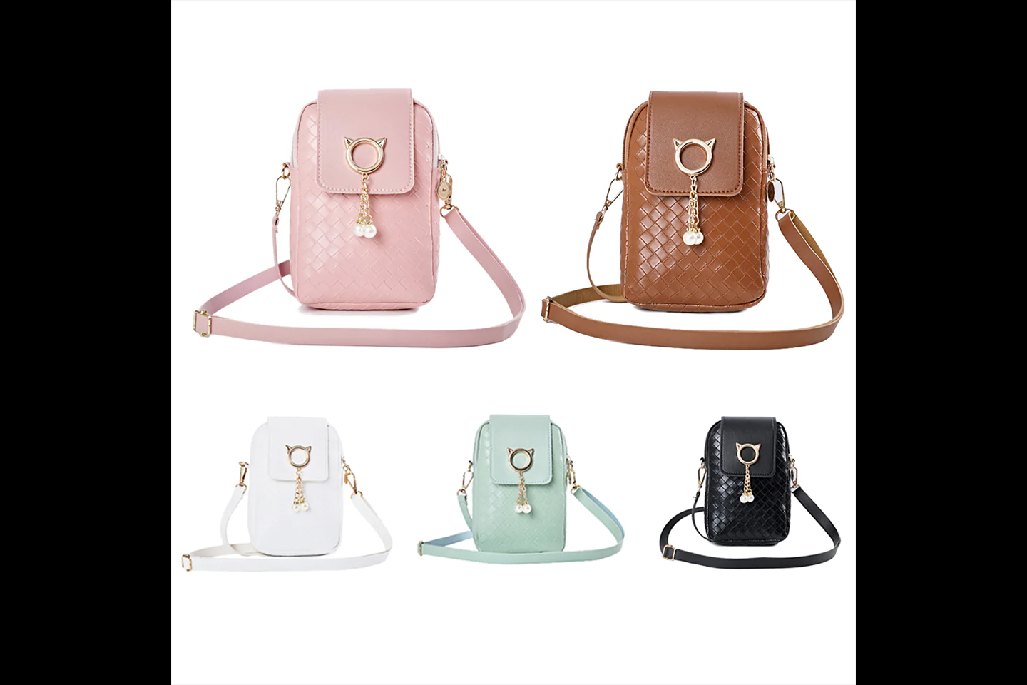 Liten crossbody-väska som passar perfekt för t.ex. mobiltelefon, nycklar, kort etc. Välj mellan vit, svart, grön, rosa och brun.