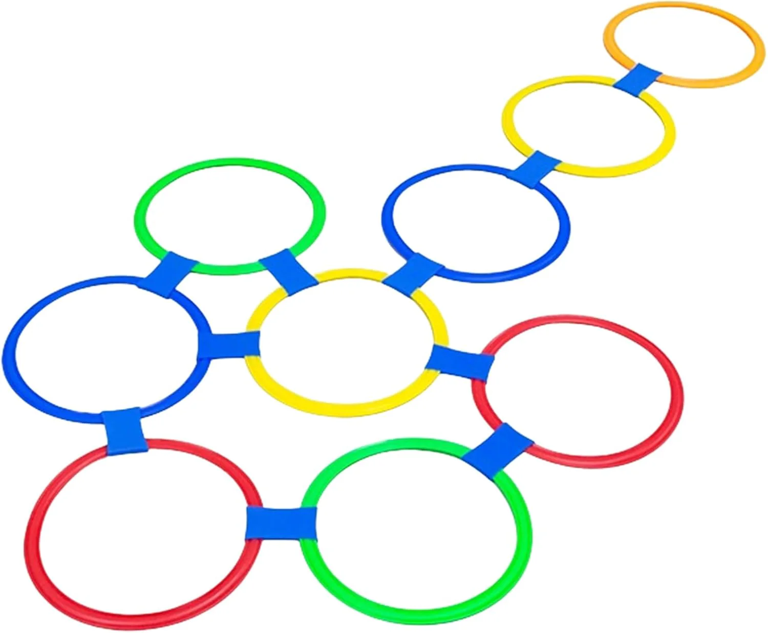 Detta ringset ger barn ett roligt och aktivt sätt att utveckla balans, motorik och smidighet. Setet består av 10 färgglada ringar och 10 sammanfogande delar som enkelt kan monteras till olika mönster och utmaningar. Perfekt för lek både inomhus och utomhus - i trädgården, i skolan eller hemma.