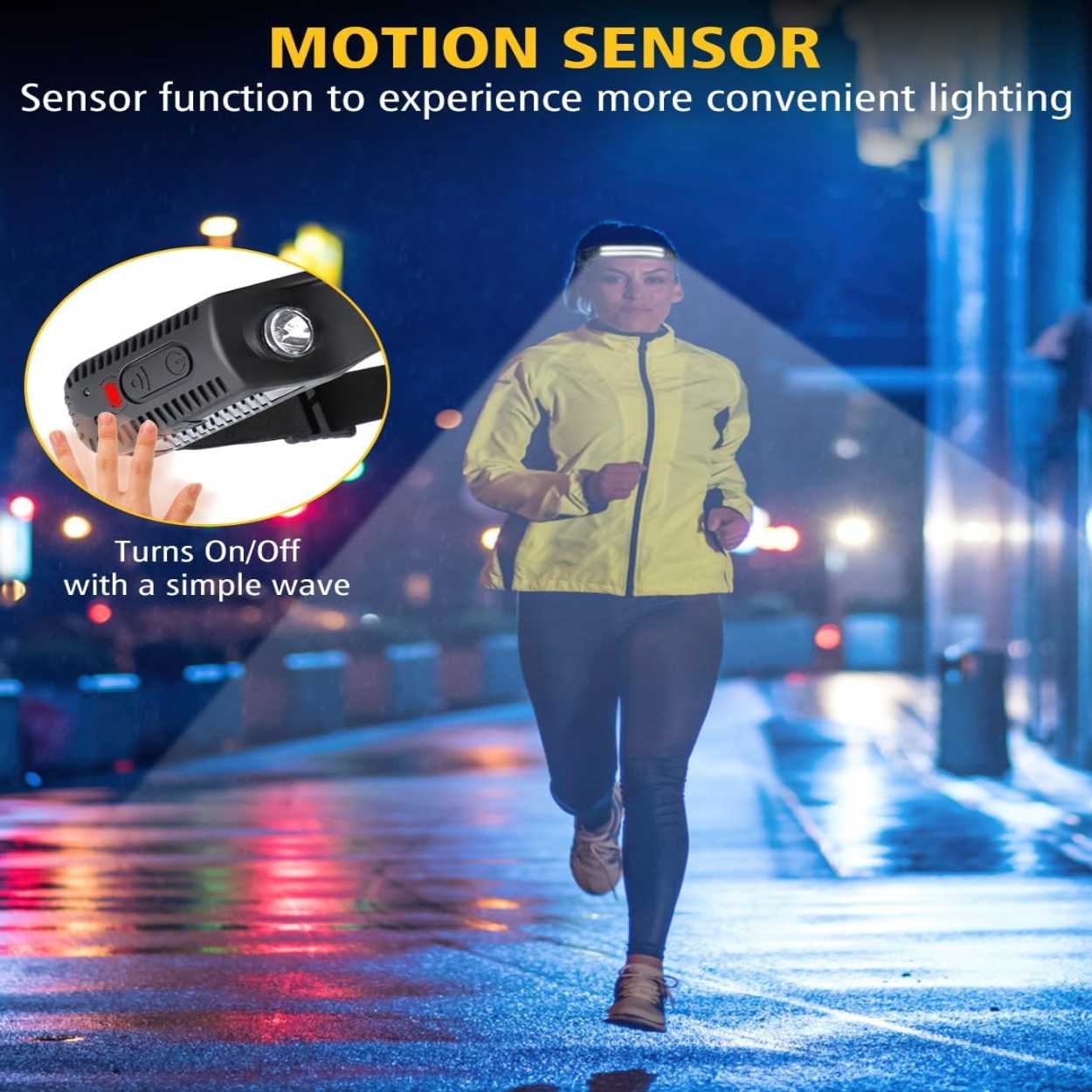 - Tänd eller släck lampan enkelt med en handrörelse – perfekt när du bär handskar eller har smutsiga händer!
