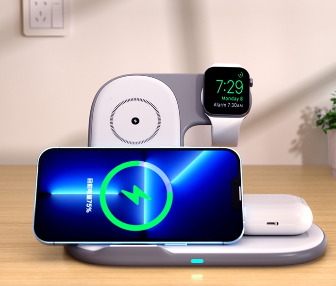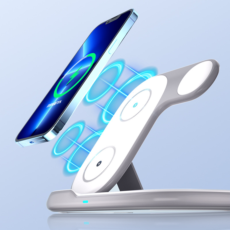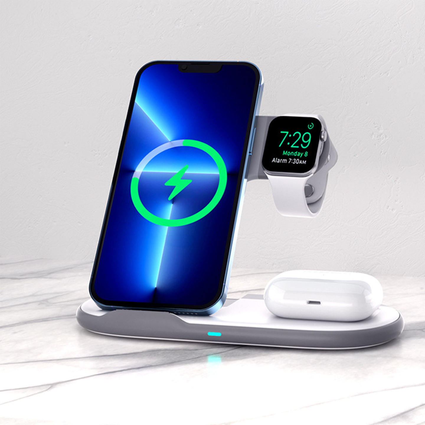 Denna hopfällbara 3-i-1 trådlösa laddare ger snabb laddning för alla Qi-kompatibla enheter, så att din telefon, hörlurar och klocka är fulladdade på ett ställe.