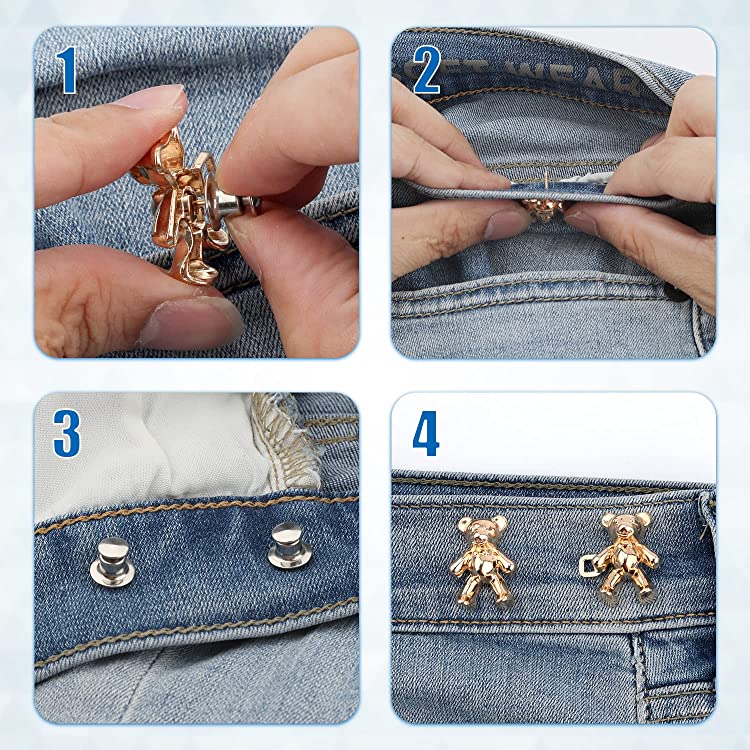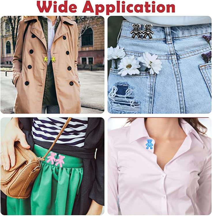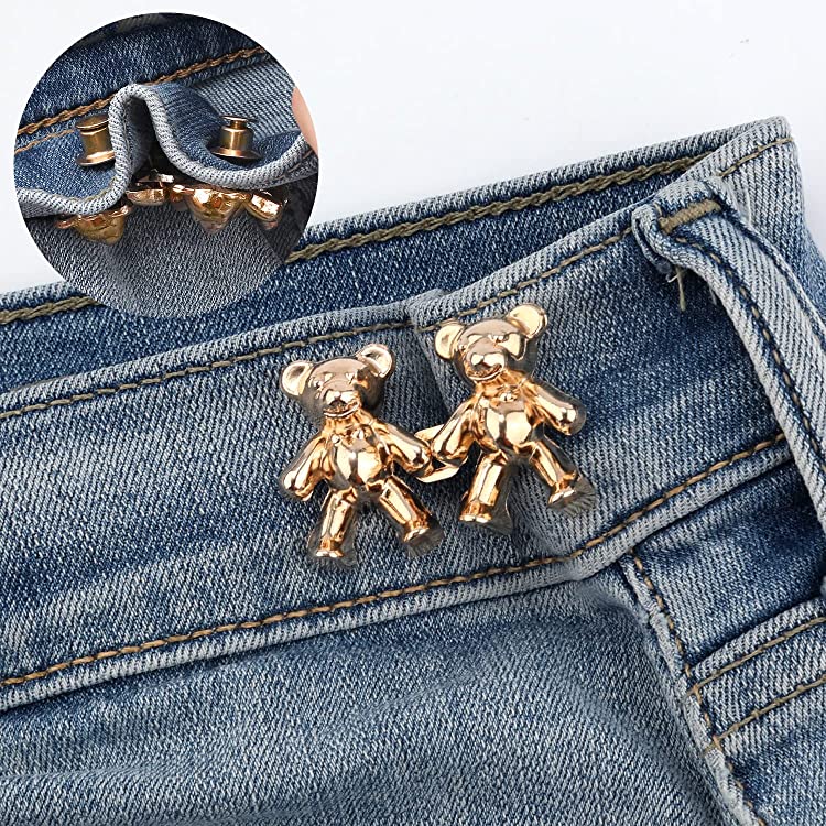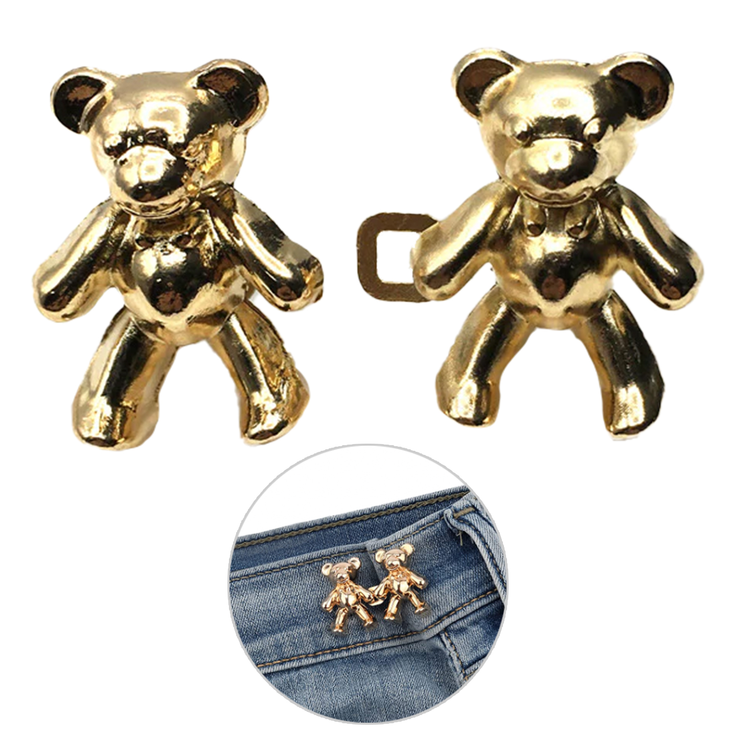 Löstagbara söta nålar till byxor som gör att du kan dra åt midjan. Den söta björndesignen gör att jeansnålarna passar till de allra flesta plagg och ger en extra snygg detalj.