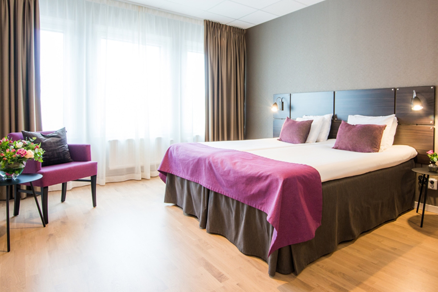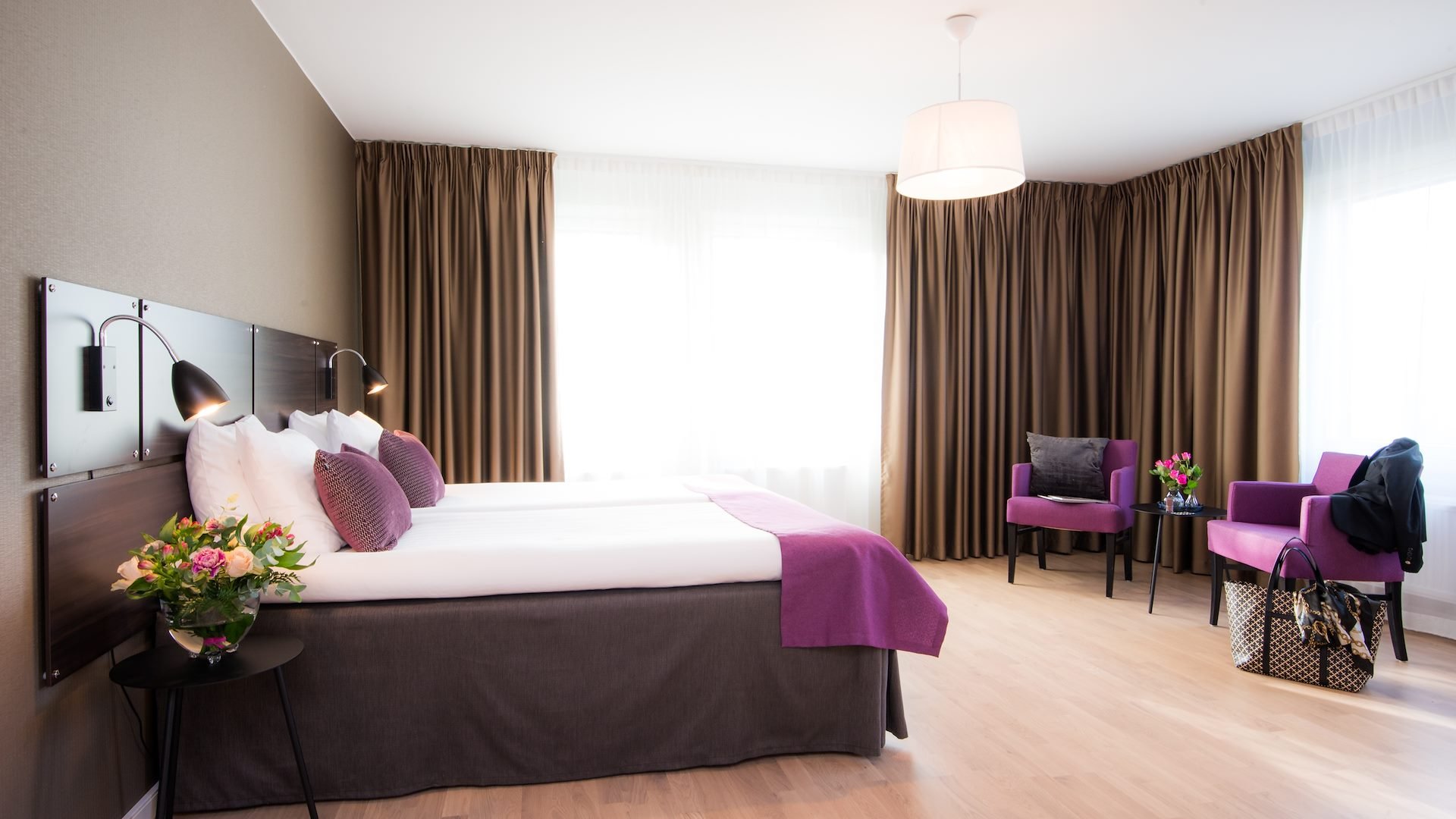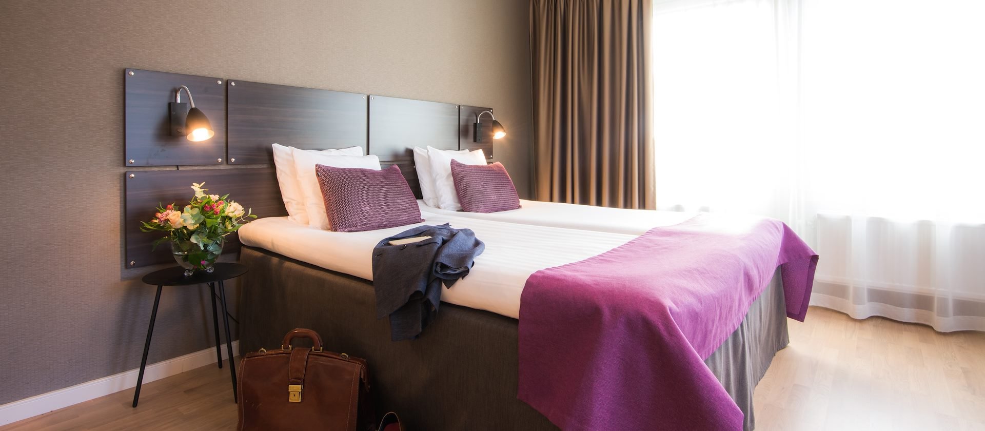 Rummen är modernt inredda med stilren design och bekväma sängar för en god natts sömn. Dubbelrummen har fräscha badrum med dusch och bekväma sängar. Eftersom dubbelsängen består av två fristående 90-sängar kan de enkelt skjutas isär vid behov, vilket gör dem lika passande för par, vänner eller kollegor.