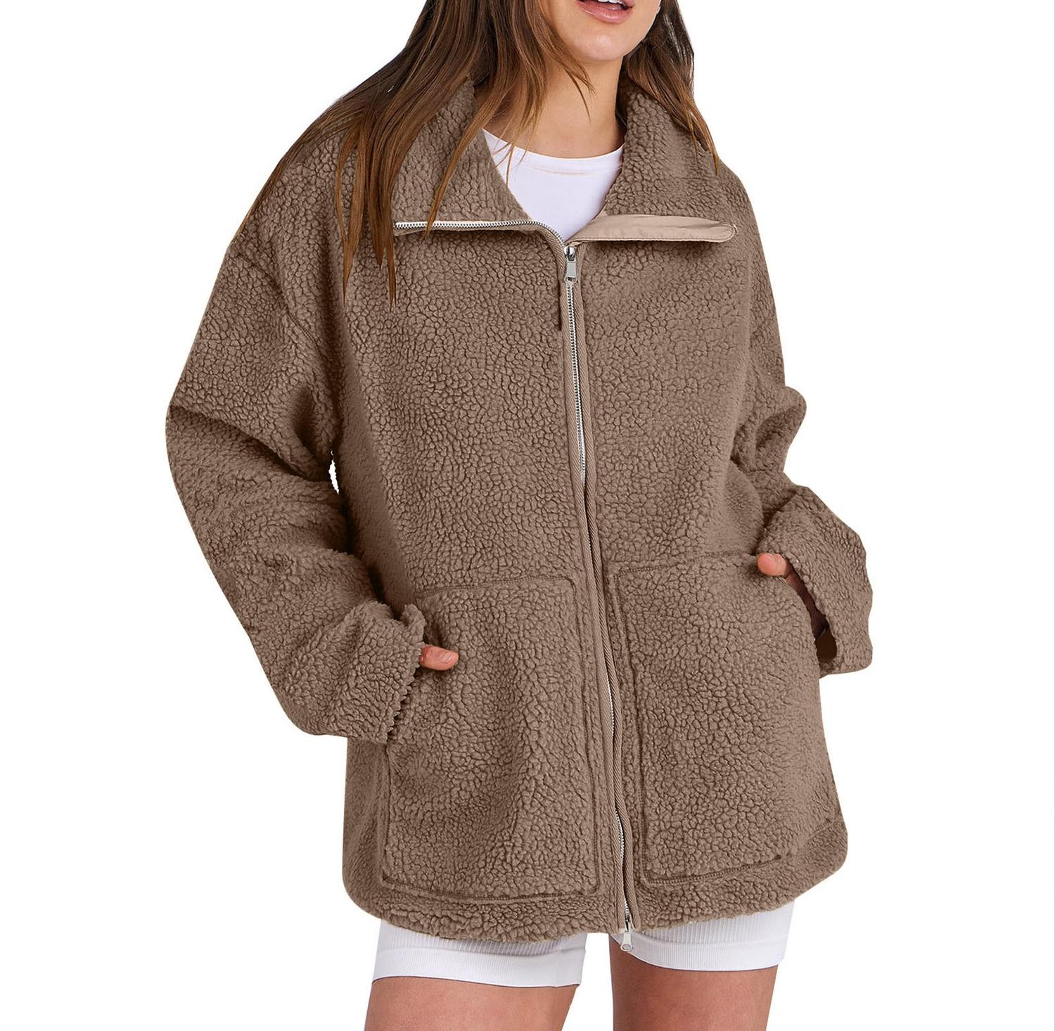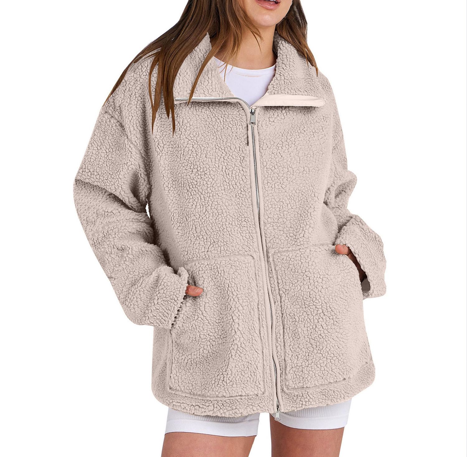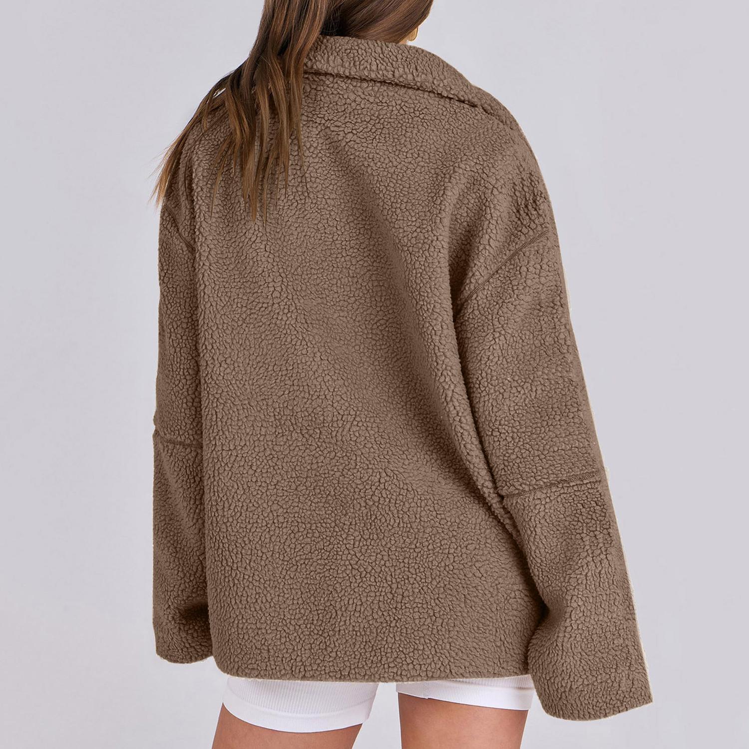 Mysig fleecejacka med dragkedja och rymliga fickor