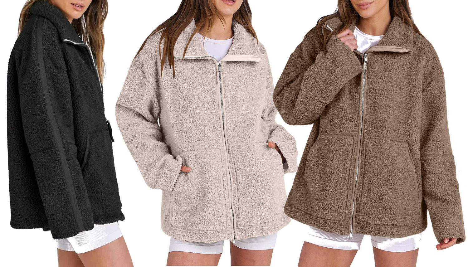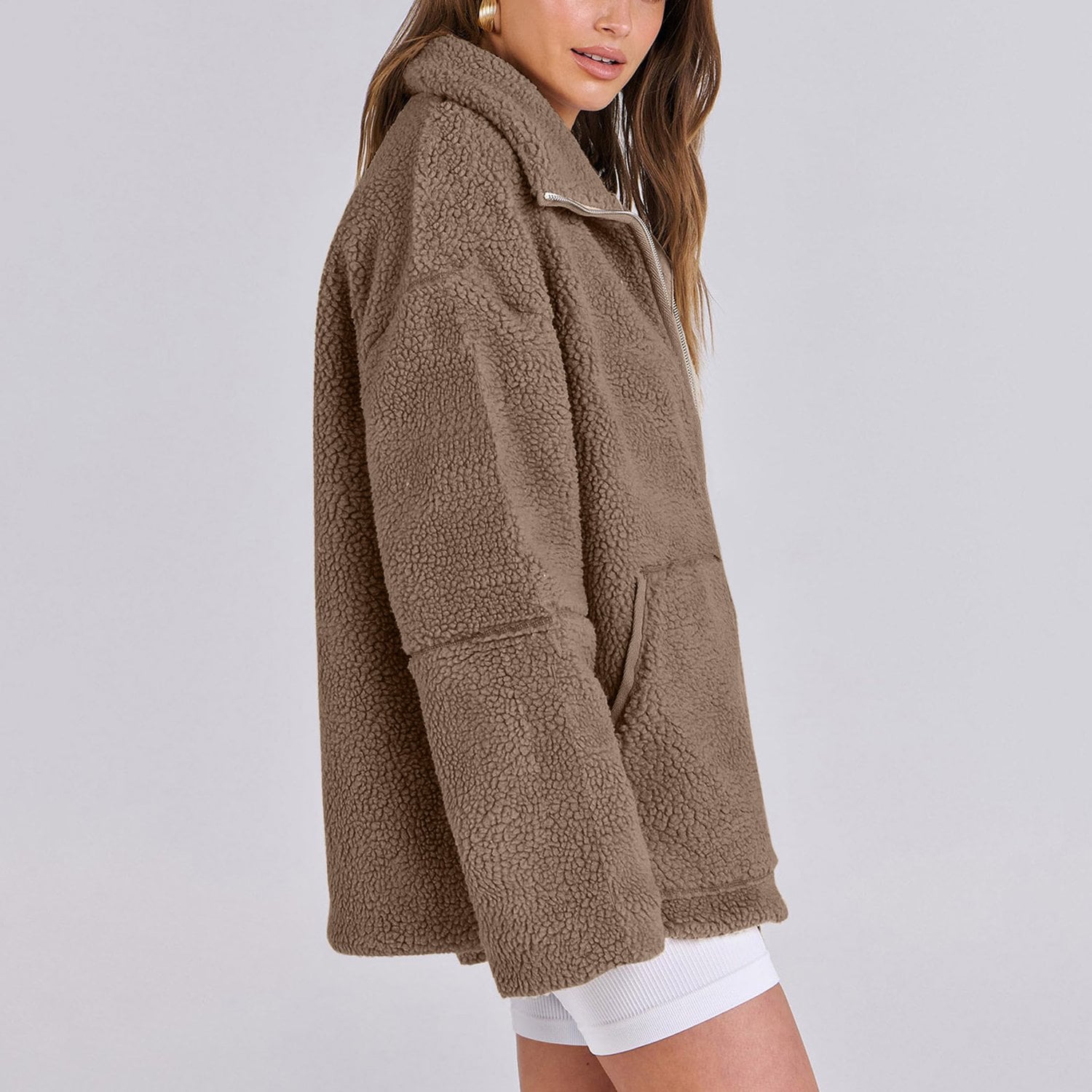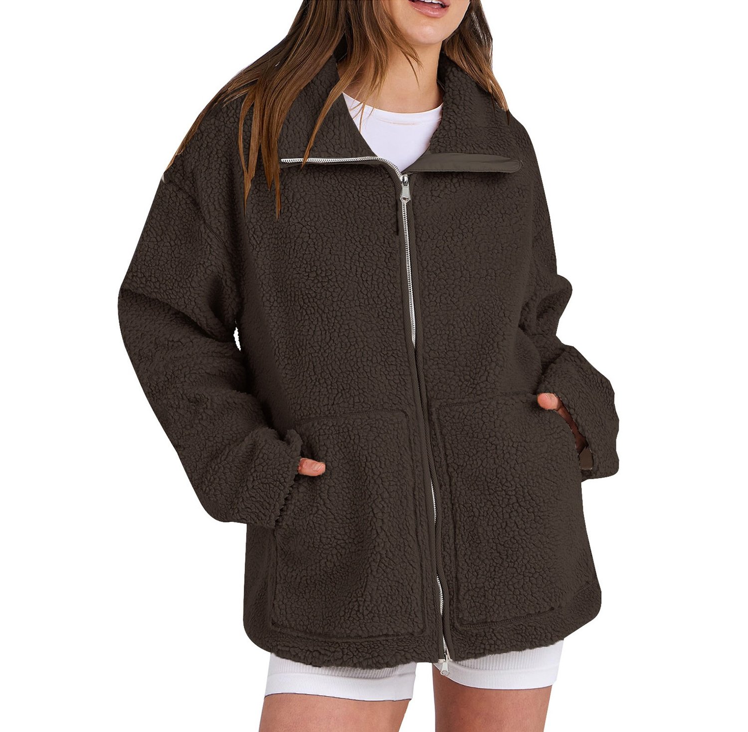 Mysig fleecejacka med dragkedja och rymliga fickor